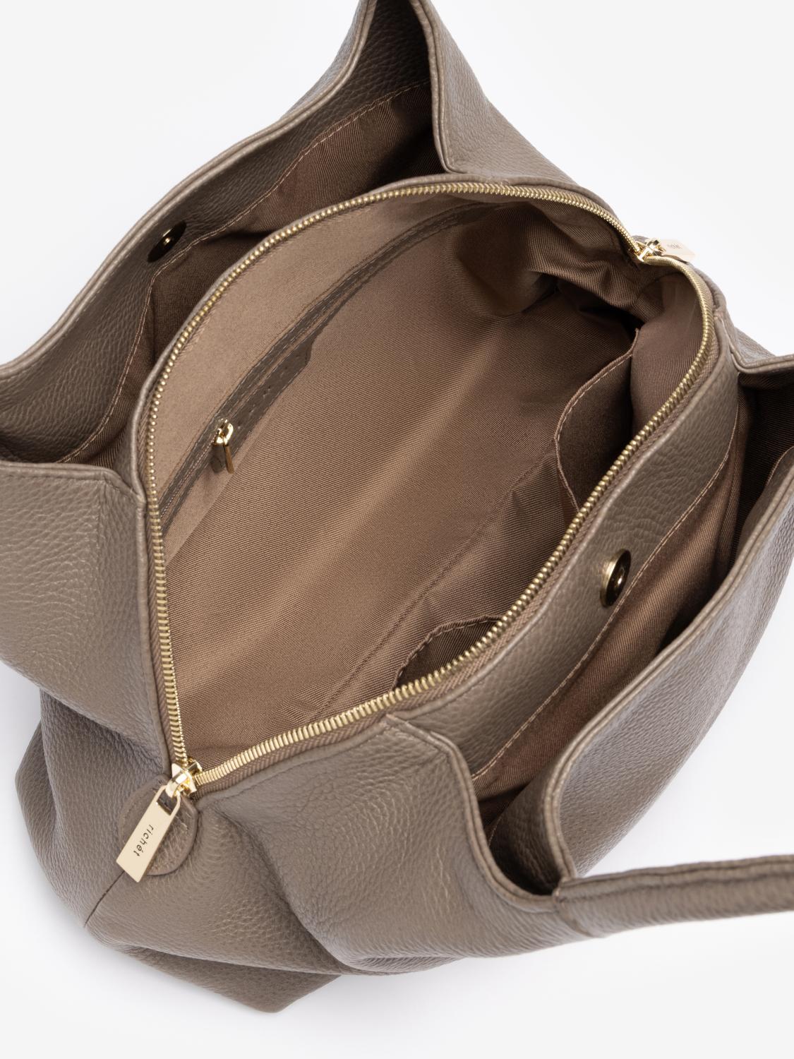 Внутри: три автономных отдела. Средний закрывается на молнию,боковые на магнитные кнопки. На передней стороне карман для мобильного телефона и карман для мелочей, на задней стороне карман для документов на молнии.