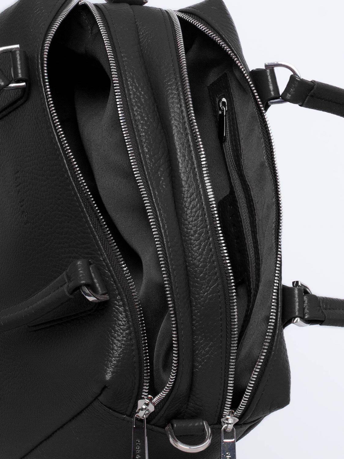 Удобная вместительная сумочка с двумя автономными отделами,каждый из которых закрывается на молнию, носится в руке или на плече на длинном ремне.