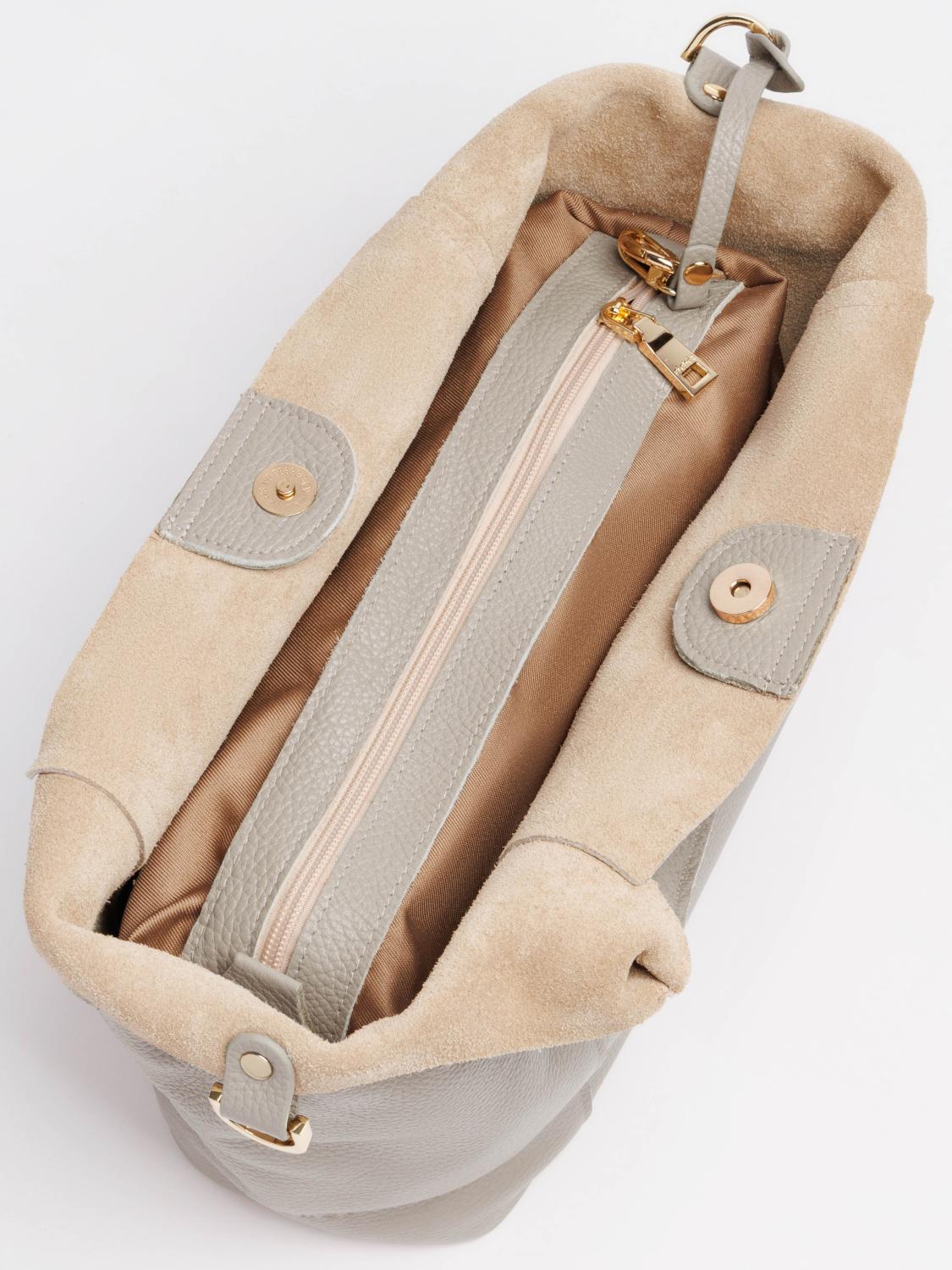 В комплекте съемное отделение-косметичка из экокожи на молнии. На передней стенке карман для мобильного телефона и карман для мелочей, на задней - карман для документов на молнии. 2920LG 930 Бежевый