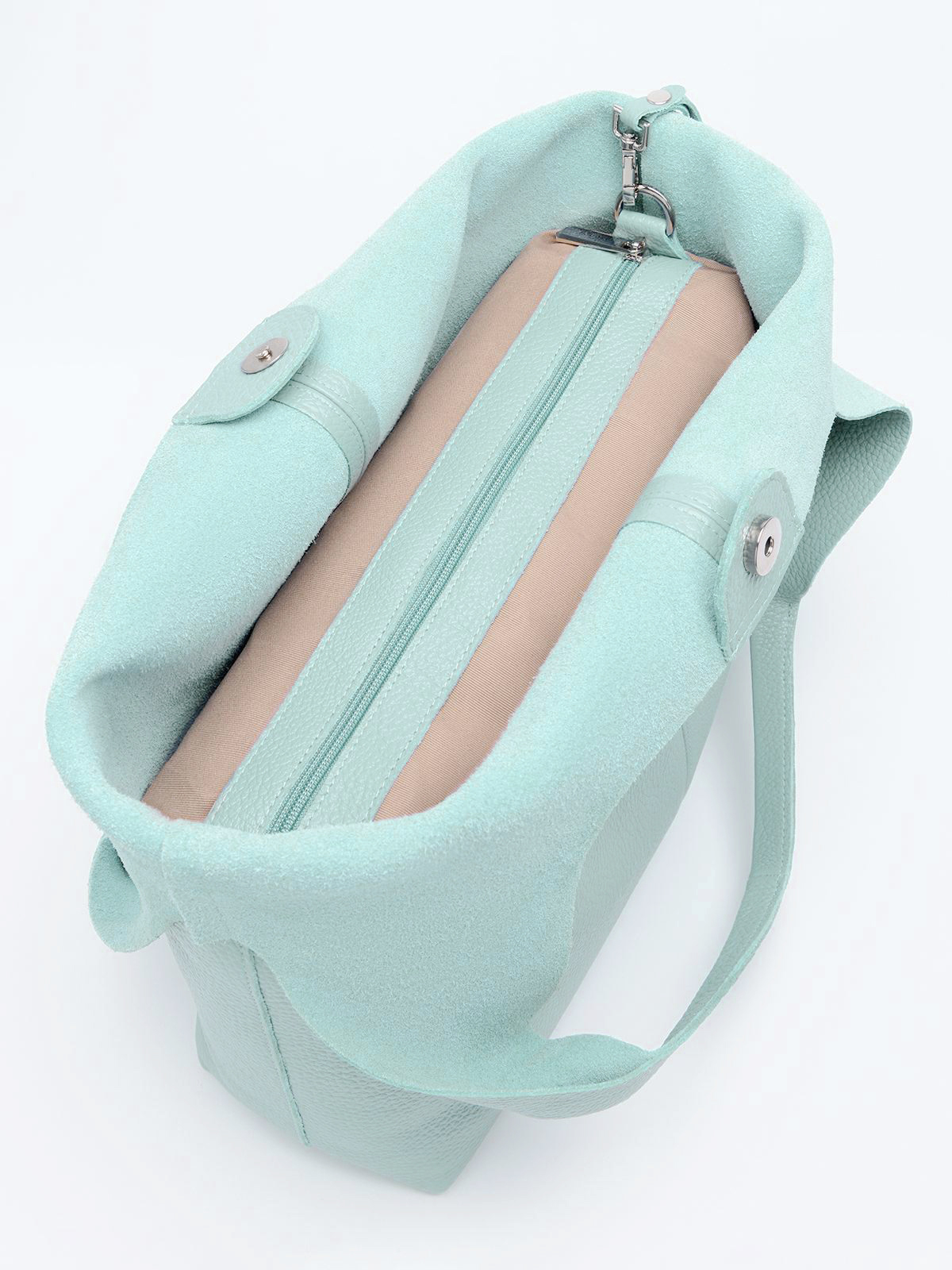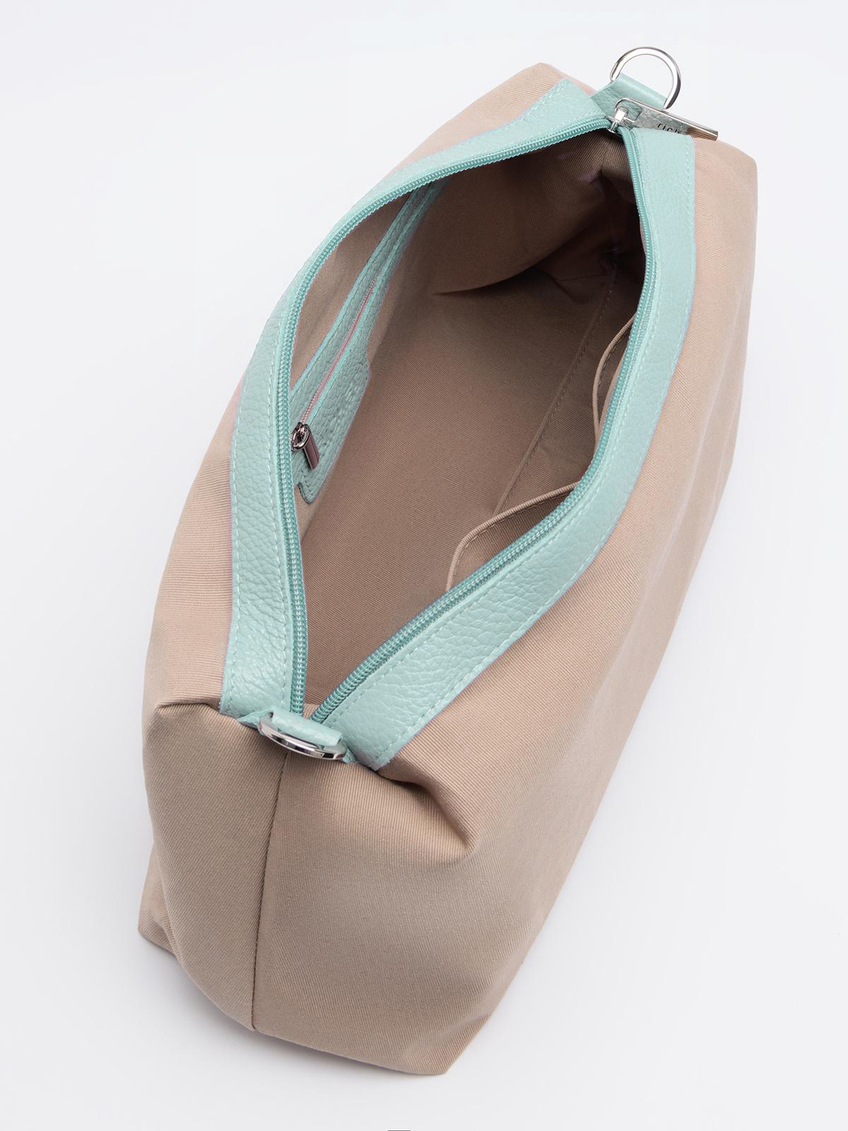 Внутри: съёмное отделение на карабинах, закрывающееся на молнию.