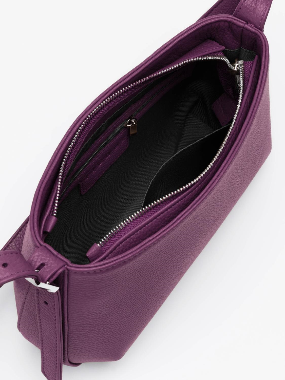 Внутри: один карман на молнии для документов и один открытый.
