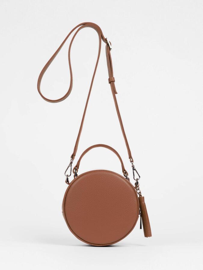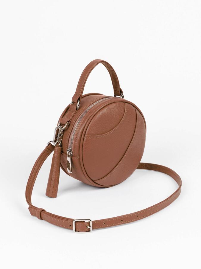 Превосходная круглая сумочка, очень мягкая и бархатистая на ощупь. Максимальная длина ремня 140 cm