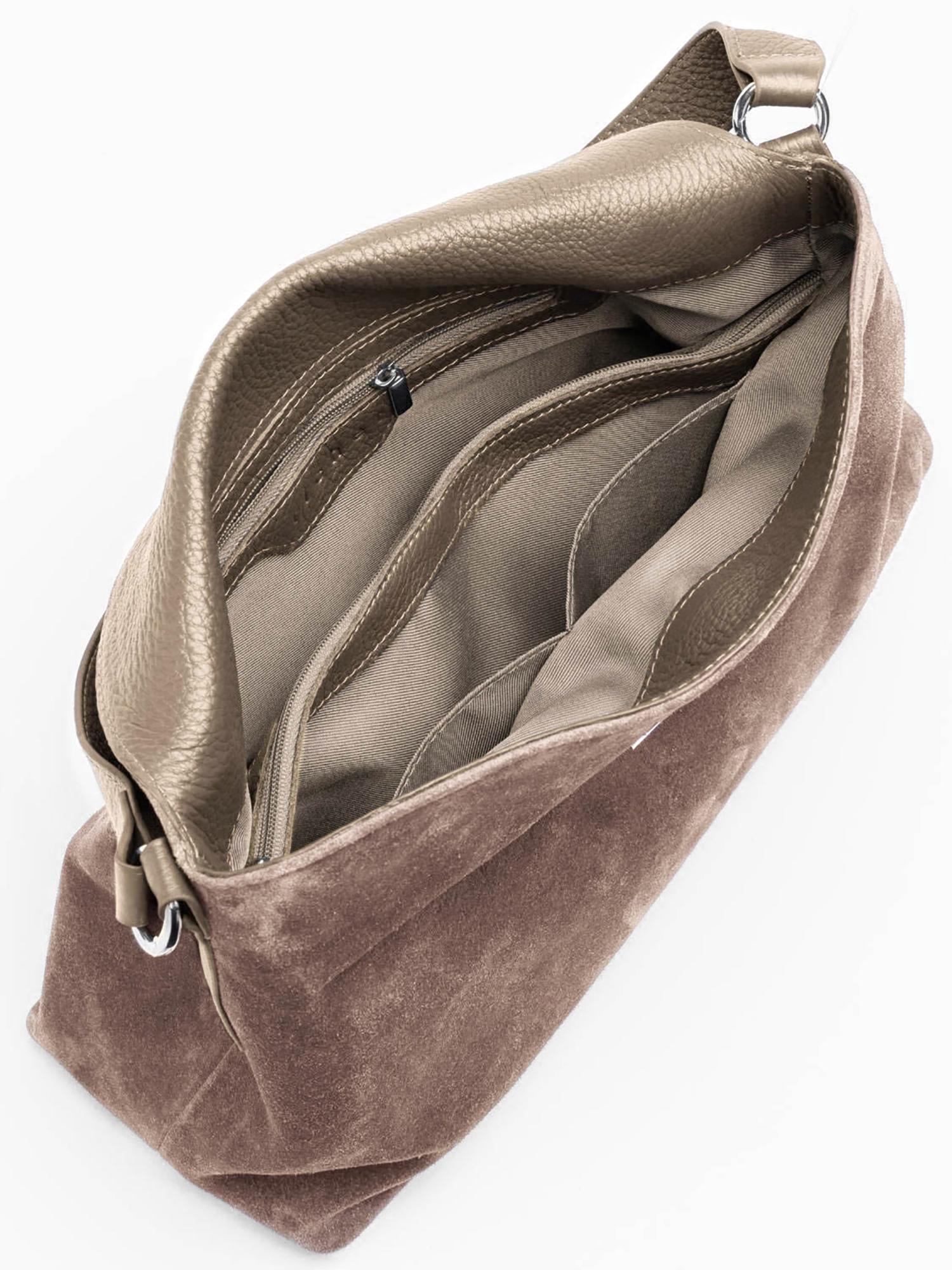 Внутри: перегородка на молнии, 1 карман на молнии, 2 открытых кармана.