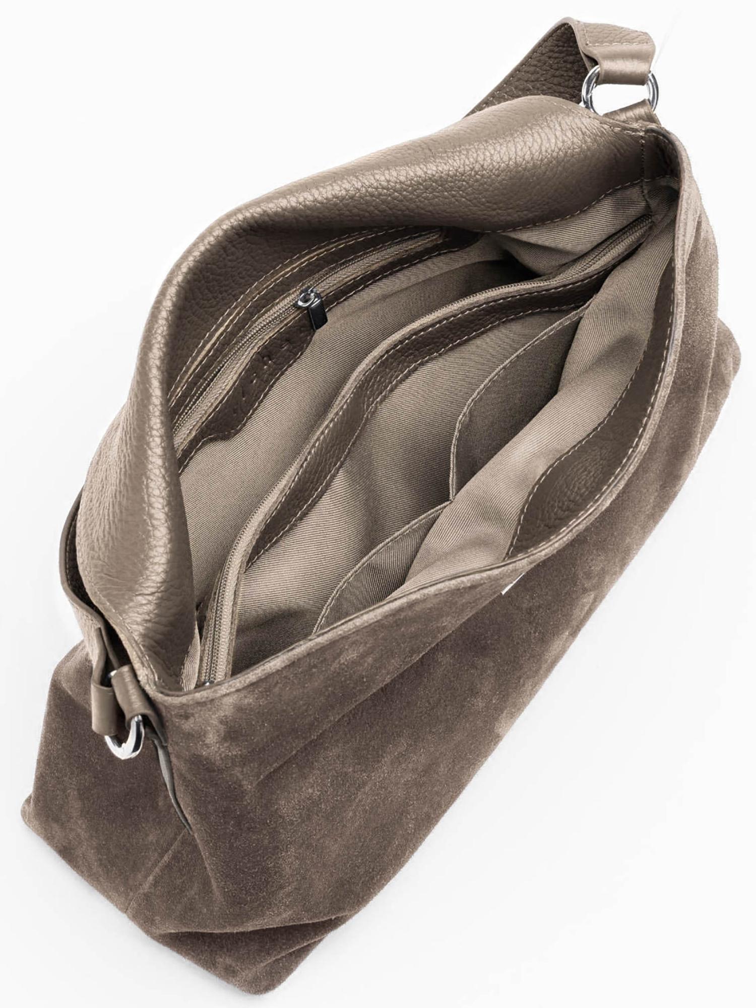 Внутри: перегородка на молнии, 1 карман на молнии, 2 открытых кармана.