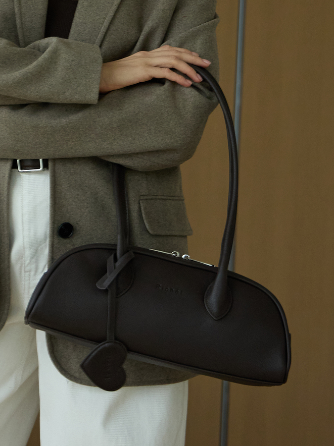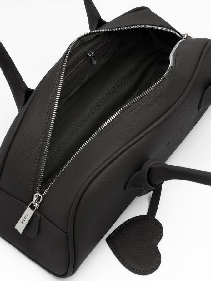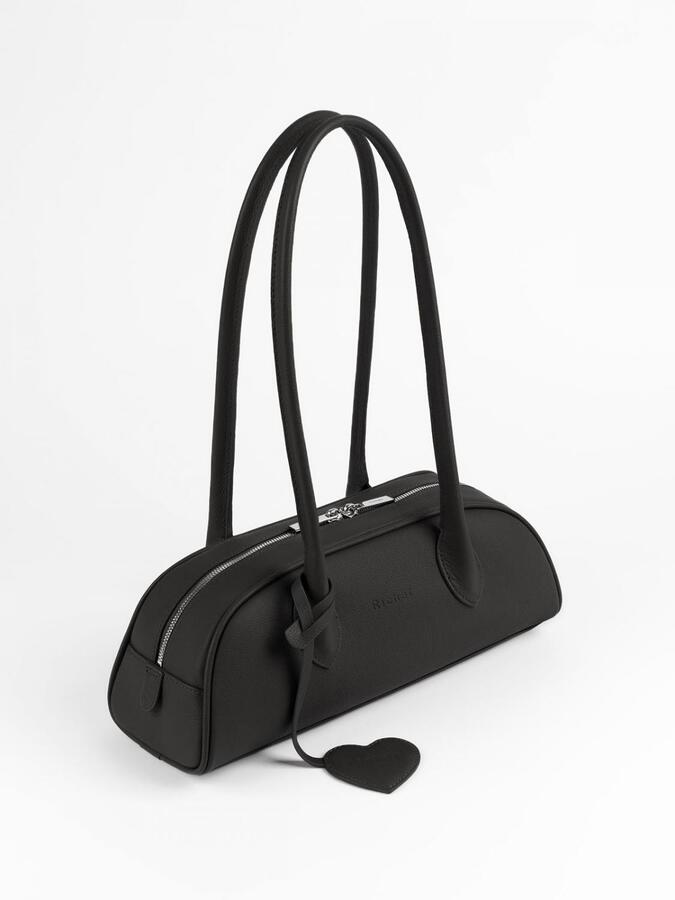Великолепная функциональная сумка-багет из натуральной кожи от Richet (РИШЕ) закрывается на молнию в стилистике bowling bag.