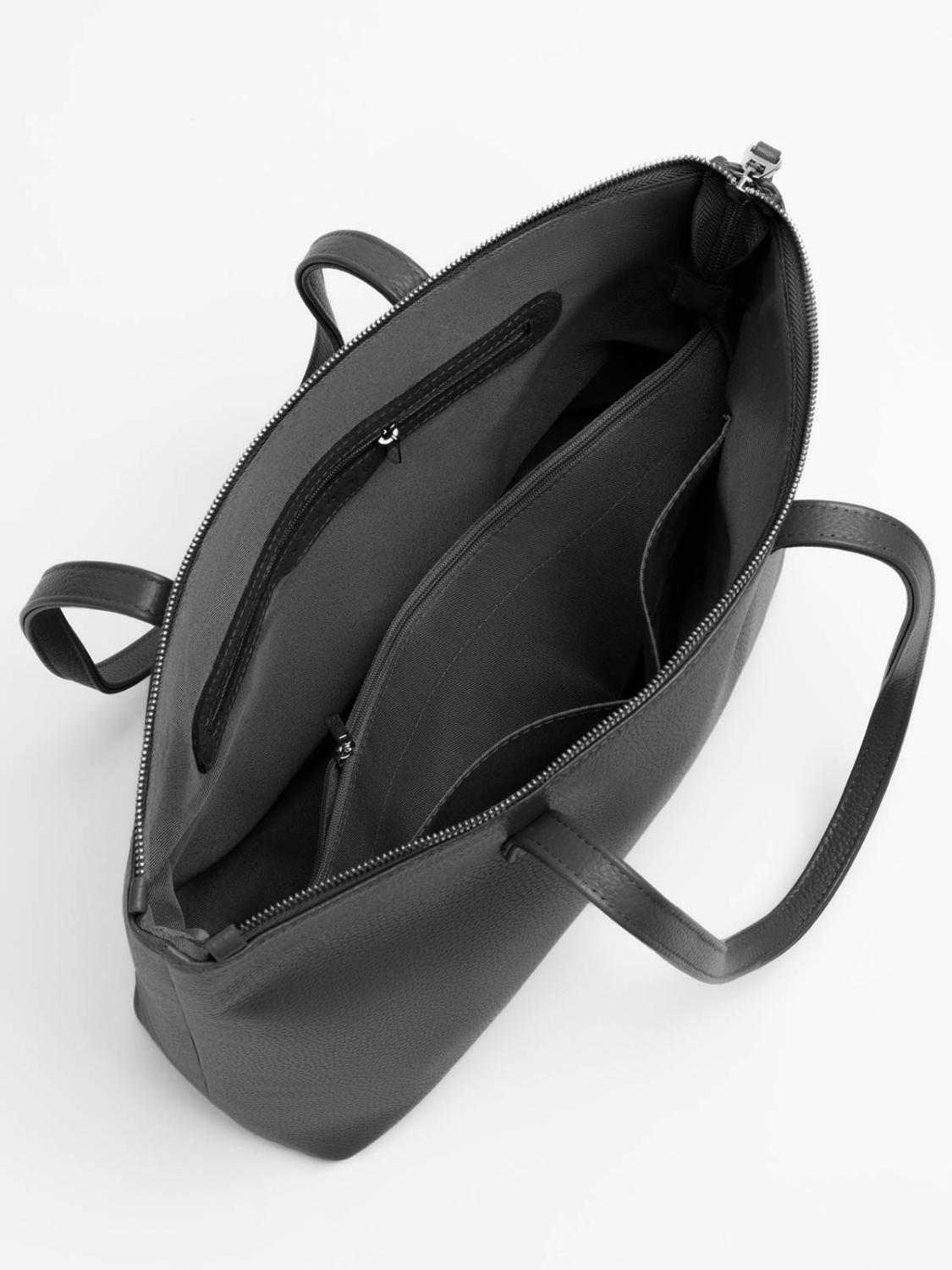 Внутри сумки перегородка на молнии для удобного разделения пространства, а также карман на молнии для хранения мелких предметов (паспорт и т.п.) и два открытых кармашка для смартфона или других вещей.