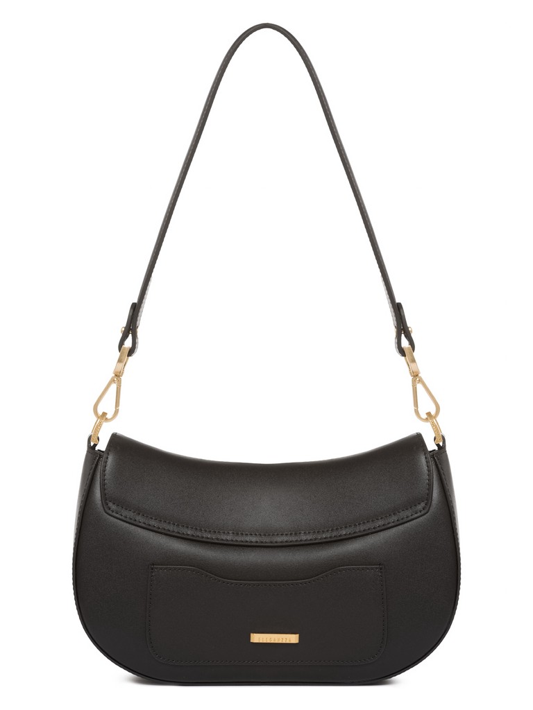 Женская сумка торговой марки Eleganzza из натуральной кожи. Хит сезона - элегантный багет с универсальной стилизацией. Плавные линии, сдержанный дизайн, удобная организация внутреннего пространства. Модель закрывается клапаном и фиксируется матовой лаконичной фурнитурой. Внутри одно отделение с карманом на молнии и открытым карманом. На задней стенке есть открытый карман. Высота ручки - 29 см. Модель не имеет ножки на дне. Не вмещает формат А4.