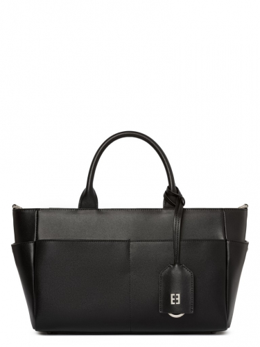 Женская сумка торговой марки Eleganzza из натуральной кожи. Новая модель сезона в строгом лаконичном дизайне. Модель застегивается на молнию. Внутри одно отделение с карманом на молнии и открытым карманом. Для удобства по всей окружности сумки расположены открытые карманы быстрого доступа. Навесной брелок с кольцом для ключей - функциональное дополнение: можно оставить на ручке и прятать ключи во внешний карман, а можно закрепить на полукольцо и убирать ключи в сумку. Высота ручек - 11 см. Длина регулируемого съемного плечевого ремня из натуральной кожи - 114 см, ширина - 1,5 см.  Модель имеет ножки на дне. Не вмещает формат А4.