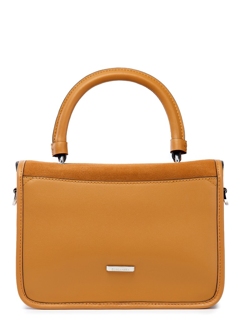 Женская сумка торговой марки Eleganzza из натуральной кожи. Модель закрывается клапаном на магнитную кнопку. Содержит внутри два отделения, между которыми имеется открытый карман. На задней стенке есть открытый карман. Высота ручки – 10 см. Длина нерегулируемого наплечного ремня из натуральной кожи – 80 см, ширина – 3 см. Длина регулируемого наплечного ремня из натуральной кожи - 118 см, ширина - 1,4 см. Модель не имеет ножки на дне. Не вмещает формат А4.
