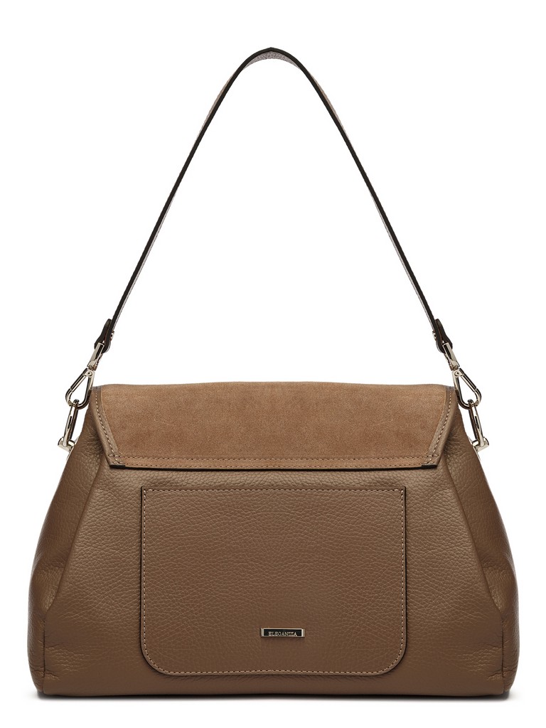 Женская сумка торговой марки Eleganzza из натуральной кожи. Модель закрывается клапаном на замок. Содержит внутри одно отделение и один отдел, в котором имеются карман на молнии и два открытых кармана. На задней стенке есть  открытый карман. Высота съемной ручки - 24 см. Максимальная длина регулируемого съемного плечевого ремня из натуральной кожи - 102 см, ширина - 1,5 см. Модель имеет ножки на дне. Не вмещает формат А4.