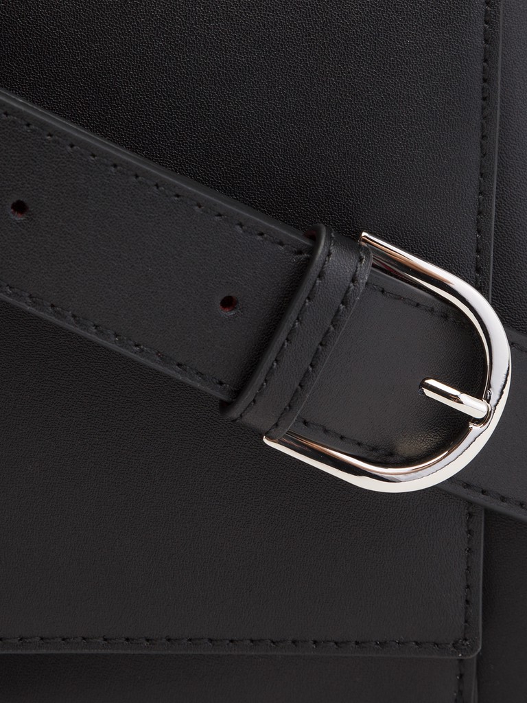 Женская сумка торговой марки Eleganzza из натуральной кожи. Модель закрывается на клапан с замком и имеет три отделения. Центральное отделение закрывается на металлическую молнию и содержит внутри карман на молнии и два открытых кармана. Два дополнительных отделения не содержат карманов. Высота ручки-цепочки - 13 см. Высота ручки из натуральной кожи - 27 см. Длина наплечного ремня из натуральной кожи - 110 см., ширина - 3 см. Модель имеет ножки на дне.