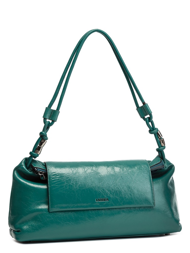 Женская сумка торговой марки Labbra из натуральной кожи. Модель закрывается на клапан с магнитами и металлическую молнию. Внутри одно отделение с карманом на молнии и двумя открытыми карманами. На задней стенке - карман на молнии. Высота ручки - 26 см. Модель имеет ножки на дне.
