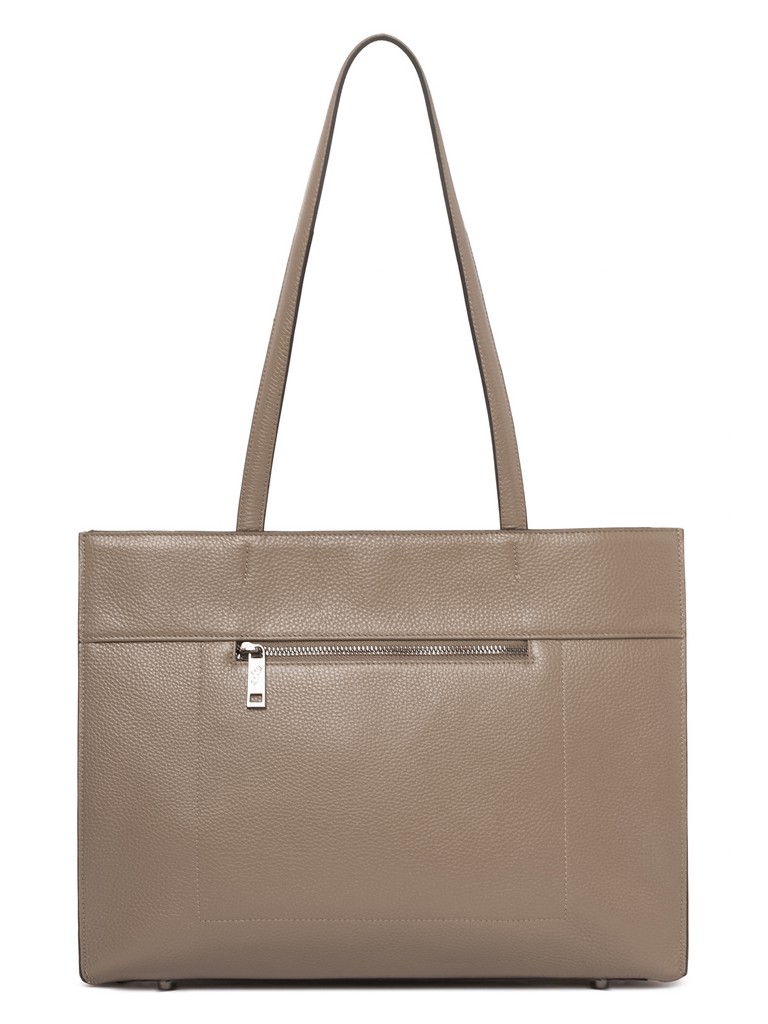 Женская сумка торговой марки Labbra из натуральной кожи. Модель застегивается на молнию. Содержит внутри одно отделение, в котором имеются карман на молнии и два открытых карман. На задней стенке есть карман на молнии. Высота ручек - 28 см. Модель имеет ножки на дне. Вмещает формат А4.