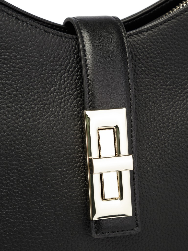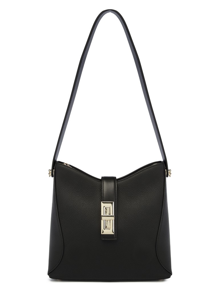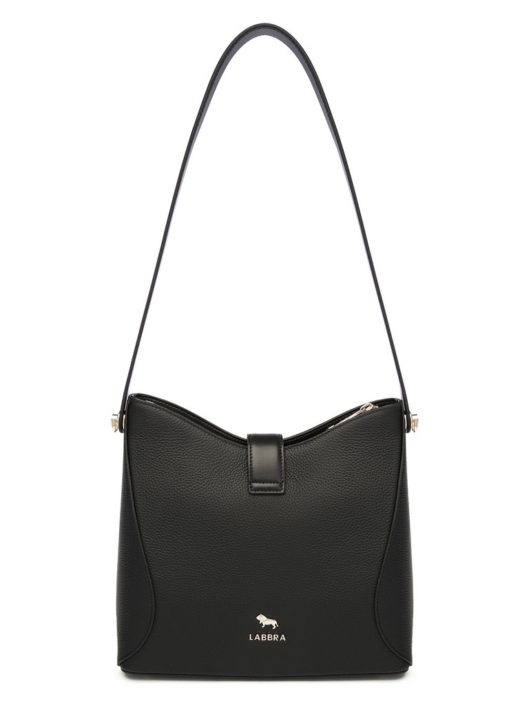 Женская сумка торговой марки Labbra из натуральной кожи. Модель застегивается на молнию и закрывается хлястиком на замок. Содержит внутри один отдел, в котором имеются карман на молнии и открытый карман. Высота ручки – 32 см. Максимальная длина съемного регулируемого плечевого ремня из натуральной кожи – 116 см, ширина – 1,5 см. Модель имеет ножки на дне. Не вмещает формат А4.