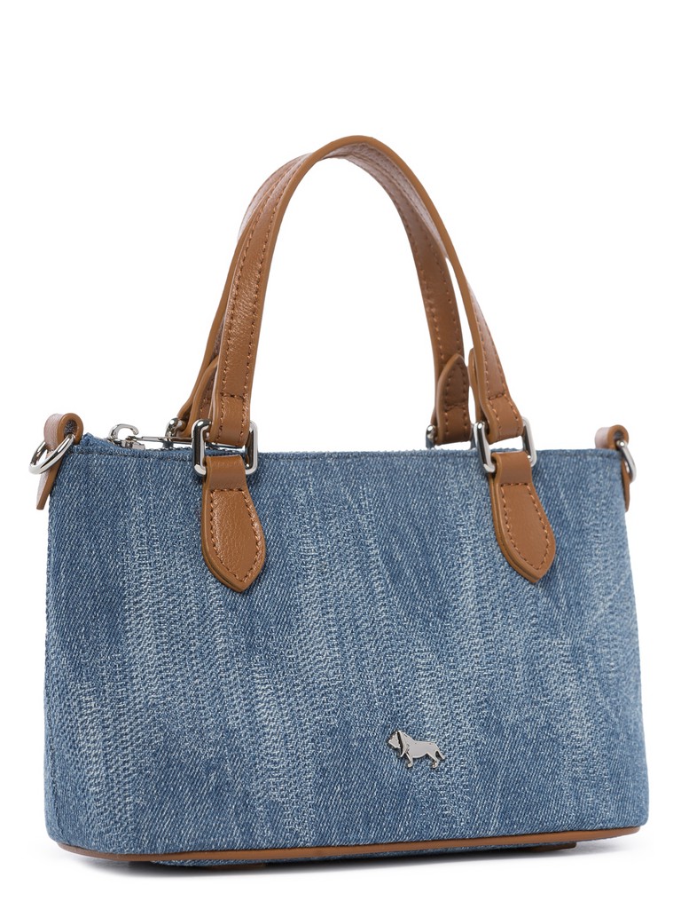 Женская сумка торговой марки Labbra из хлопка летнего голубого цвета с эффектом варки и потертостей. Отделка выполнена из натуральной кожи в классическом коричневом оттенке "Luggage", что создает стильный контраст. Модель застегивается на молнию. Внутри один отдел с карманом на молнии и открытым карманом. Высота ручек - 8 см. Максимальная длина регулируемого съемного плечевого ремня из натуральной кожи - 119 см, ширина - 1 см.  Модель не имеет ножки на дне. Не вмещает формат А4.