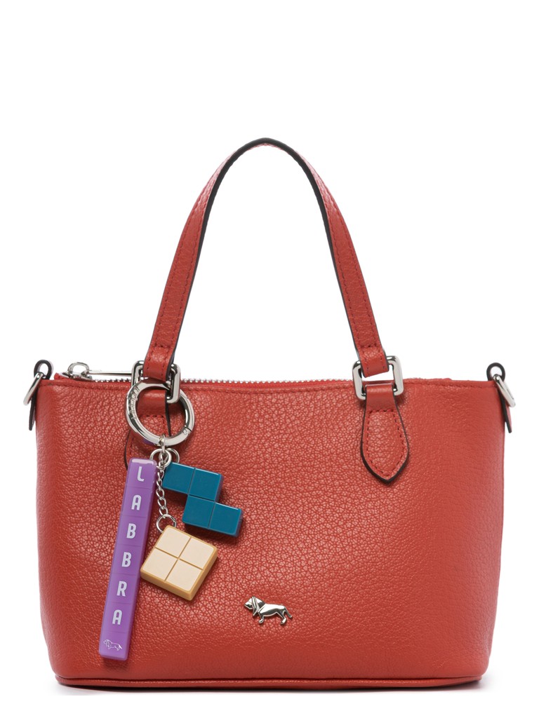 Женская сумка торговой марки Labbra из натуральной кожи. Изделие дополнено съемным брелоком-подвеской в стиле tetris из цветного пластика на фирменном кольце-карабине, который можно использовать как брелок для ключей или стильный аксессуар. Модель застегивается на молнию. Внутри одно отделение с карманом на молнии и открытым карманом. Высота ручек - 8 см. Максимальная длина регулируемого съемного плечевого ремня из натуральной кожи - 119 см, ширина - 1 см. Модель не имеет ножки на дне. Не вмещает формат А4.