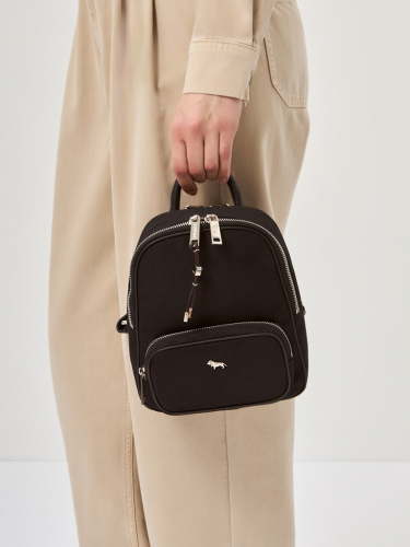Женский рюкзак торговой марки Labbra из нейлона. Новая айдентика любимого бренда представлена в оригинальной подвеске из кожи с авторской фурнитурой. Специальное плетение и водоотталкивающая пропитка нитей обеспечивают защиту от влаги: вода не впитывается, а скатывается с поверхности. Ткань гармонично сочетается с натуральной кожей, создавая практичное и элегантное изделие. Модель застегивается на молнию. Внутри одно отделение с карманом на молнии и открытым карманом. Дополнительный карман на молнии на передней стенке. Высота ручки - 4 см. Длина лямки - 66 см., ширина - 1,5 см. Модель не имеет ножки на дне. Не вмещает формат А4.