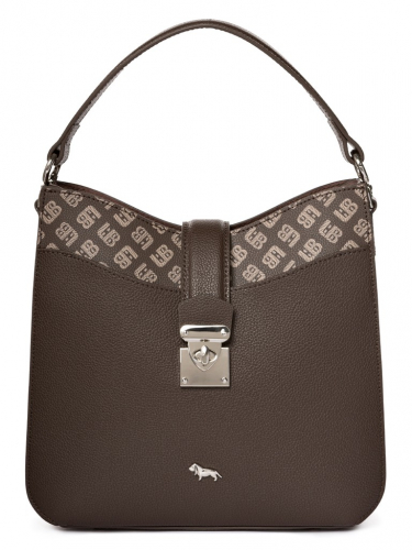 Женская сумка торговой марки Labbra из натуральной кожи. Модель закрывается карабином на фиксирующей стяжке. Внутри одно отделение с карманом на молнии, двумя открытымм карманами и вкладной косметичкой. Высота ручек - 27 см. Модель не имеет ножки на дне. Вмещает формат А4.