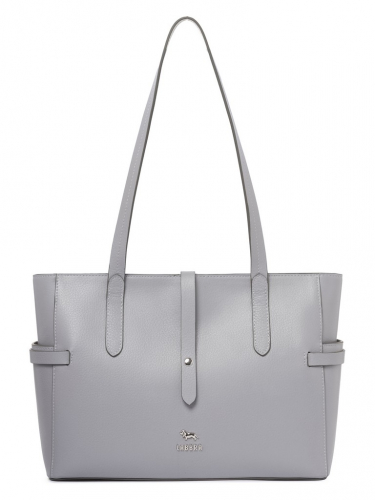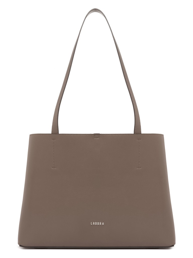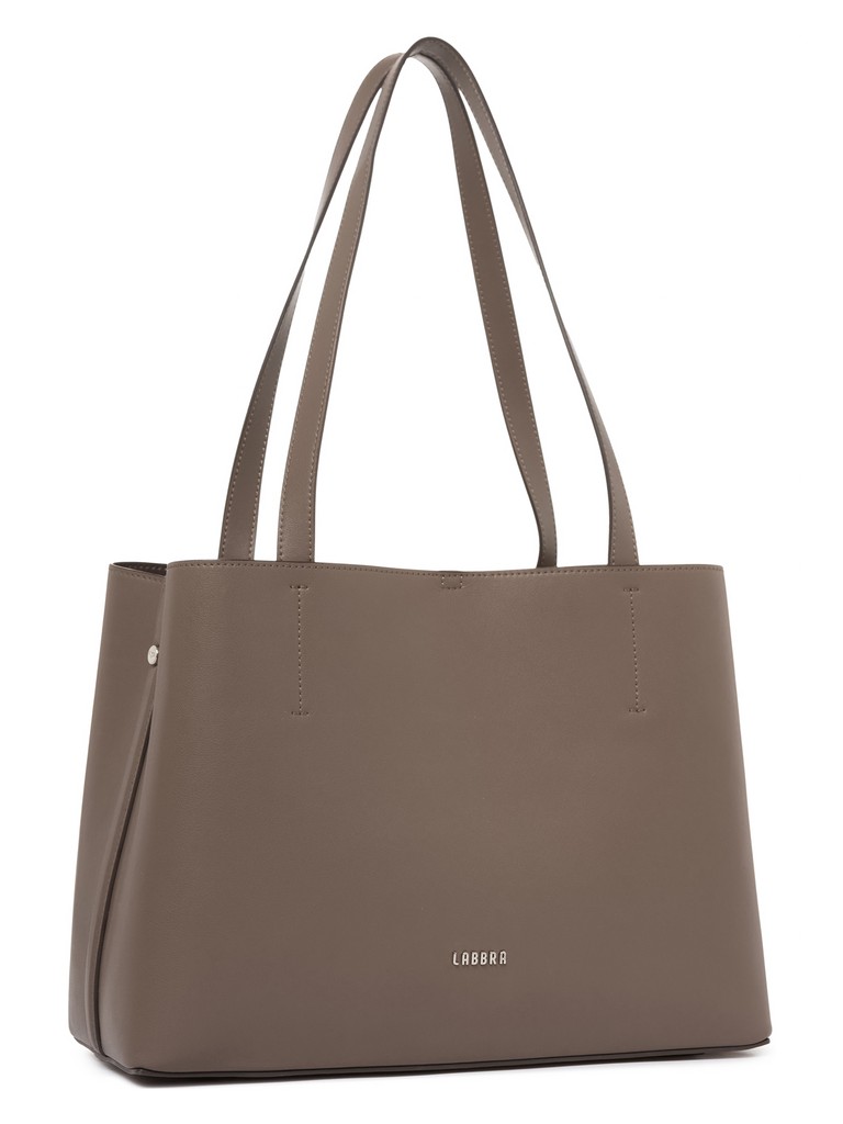 Женская сумка торговой марки Labbra из натуральной кожи. Модель закрывается карабином на фиксирующей стяжке. Внутри одно отделение с карманом на молнии, двумя открытымм карманами и вкладной косметичкой. Высота ручек - 27 см. Модель не имеет ножки на дне. Вмещает формат А4.