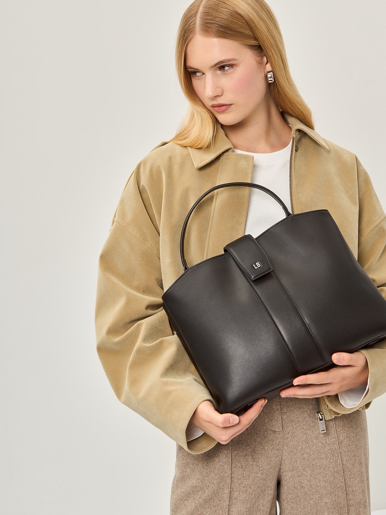 Женская сумка торговой марки Labbra из натуральной кожи. Модель застегивается на молнию. Содержит два отделения, в которых имеются карман на молнии и два открытых кармана. На задней стенке есть карманы на магнитных кнопках. Высота ручек - 13 см. Длина регулируемого съемного плечевого ремня из натуральной кожи - 90 см, ширина - 1,8 см.  Модель не имеет ножки на дне. Вмещает формат А4.