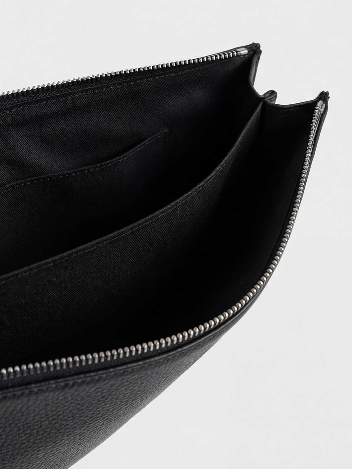 кожи, имеет застежку на молнию и с легкостью вмещает в себя документы формата А4.