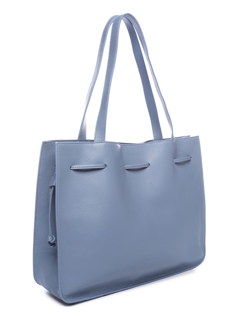 Женская сумка торговой марки Palio из натуральной кожи. Модель затягивается шнурами и застегивается на магнитную кнопку. Содержит внутри один отдел, в котором имеется съемное отделение на молнии. Высота ручек – 24,5 см. Модель не имеет ножки на дне. Вмещает формат А4.
