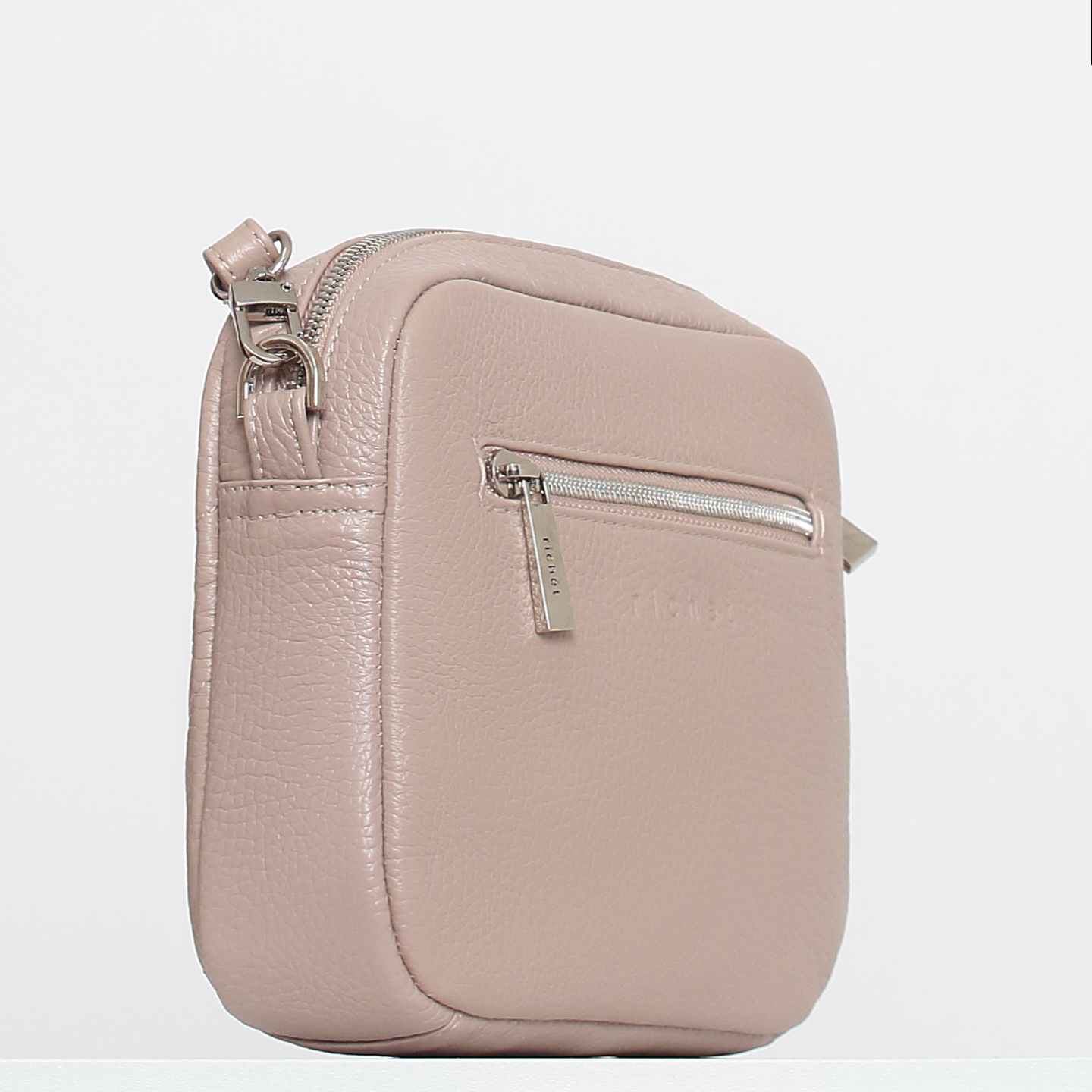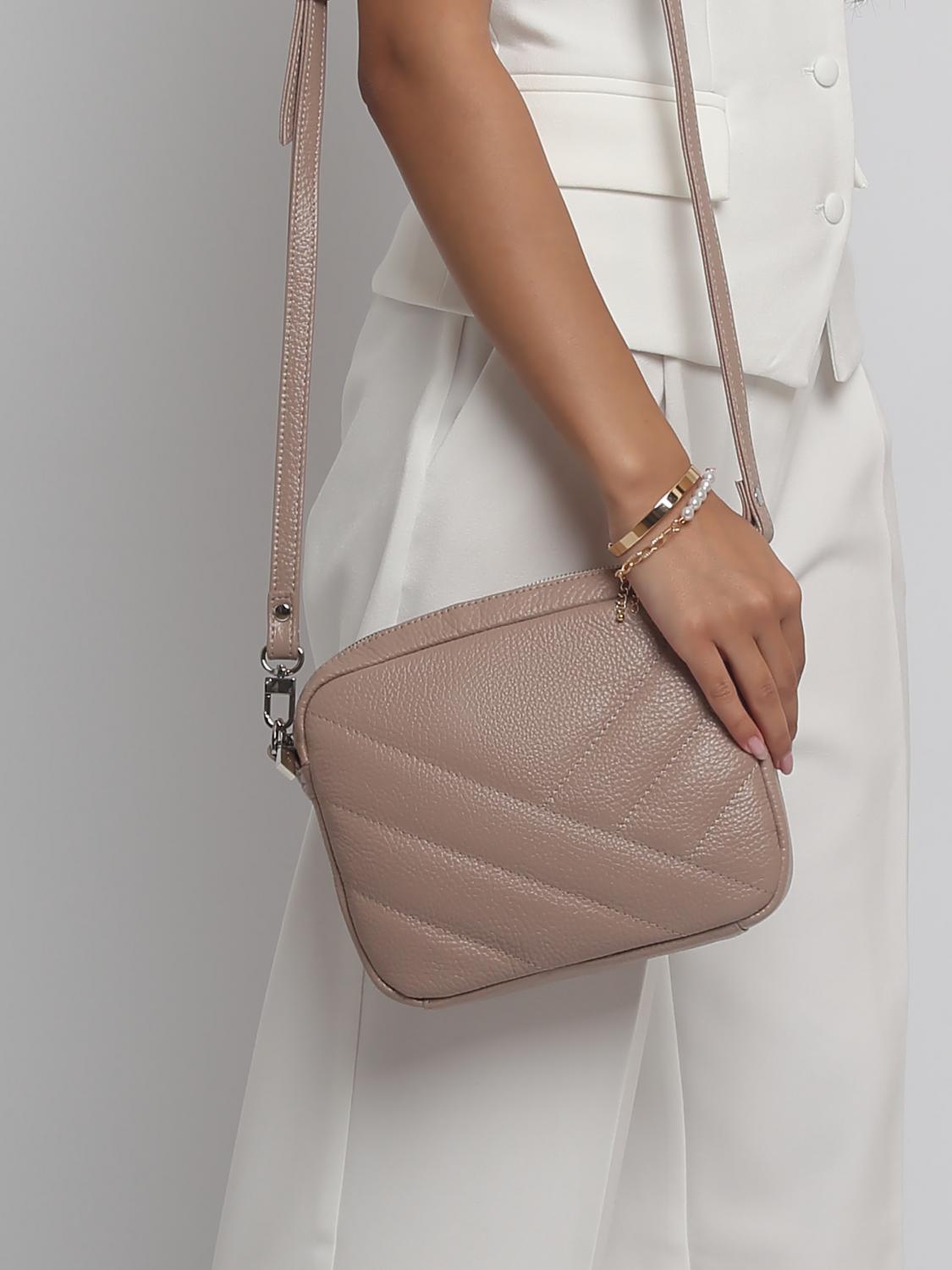 Компактная сумочка кросс-боди из мягкой кожи, закрывается на молнию, носится на плече или через плечо.