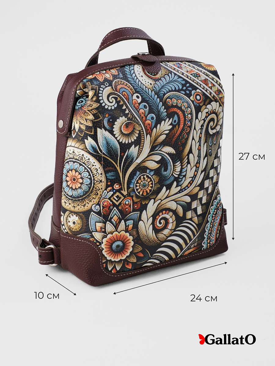 Современный, среднего размера, удобный для прогулок, путешествий и поездок рюкзак tm GALLATO. Аксессуар выполнен из натуральной кожи. Состоит из одного большого отделений. Рюкзак с фермуаром. который фиксируется кнопкой. Внутри есть карманы для мелочей и телефона. Снаружи имеется карман. закрывающийся на молнию. В него входит любой телефон. Удобный, легкий, прост в уходе. Идеально подходит как женщинам, девушкам так и юным леди. Лямки регулируются под любой рост. Размер сумки 27*24*11 см.