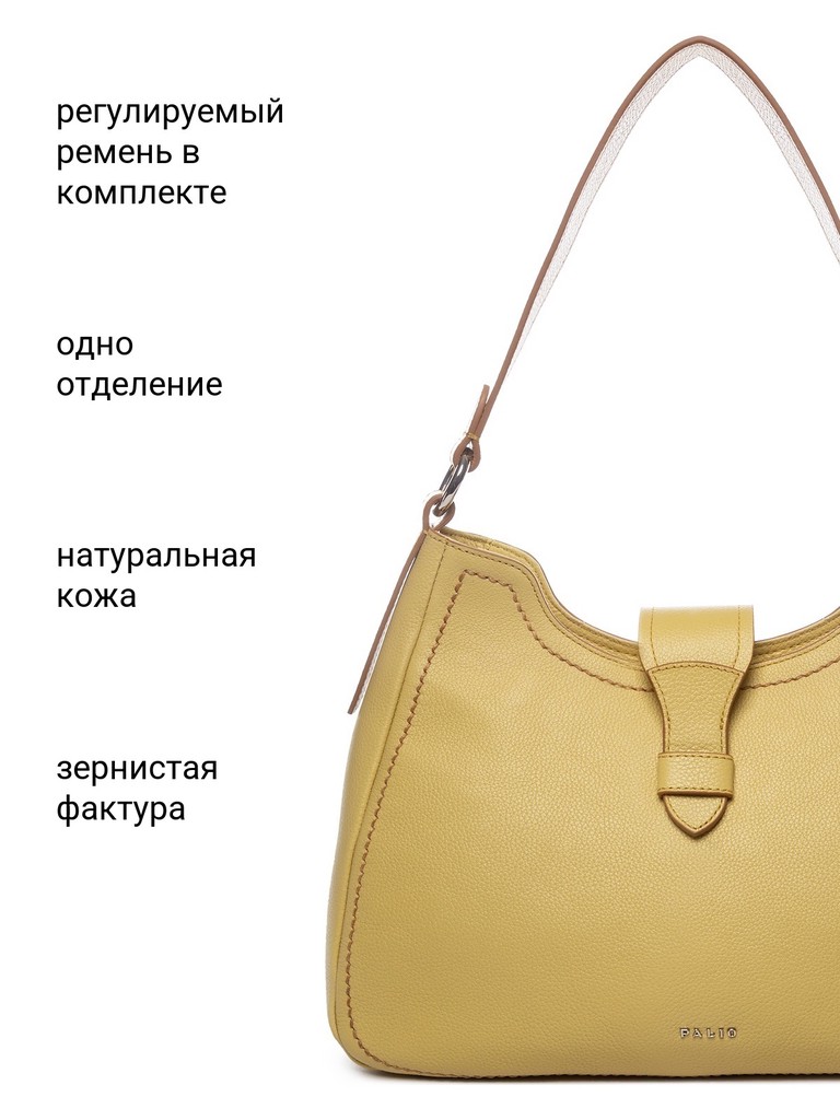 Женская сумка торговой марки Palio из натуральной кожи. Модель застегивается на молнию и закрывается хлястиком. Содержит внутри один отдел, в котором имеются карман на молнии и два открытых кармана. На задней стенке есть карман на молнии. Высота ручки – 26 см. Максимальная длина регулируемого съемного плечевого ремня из текстиля - 129 см, ширина – 4 см. Модель не имеет ножки на дне. Не вмещает формат А4.