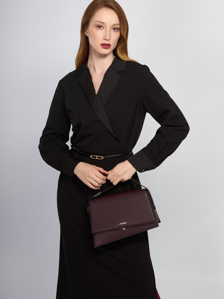 Женская сумка торговой марки Labbra из натуральной кожи. Модель закрывается на клапан с замком и имеет внутри пять отделений, четыре отделения для пластиковых карт и карман на молнии. Высота регулируемой ручки - 24 см. Модель не имеет ножки на дне.