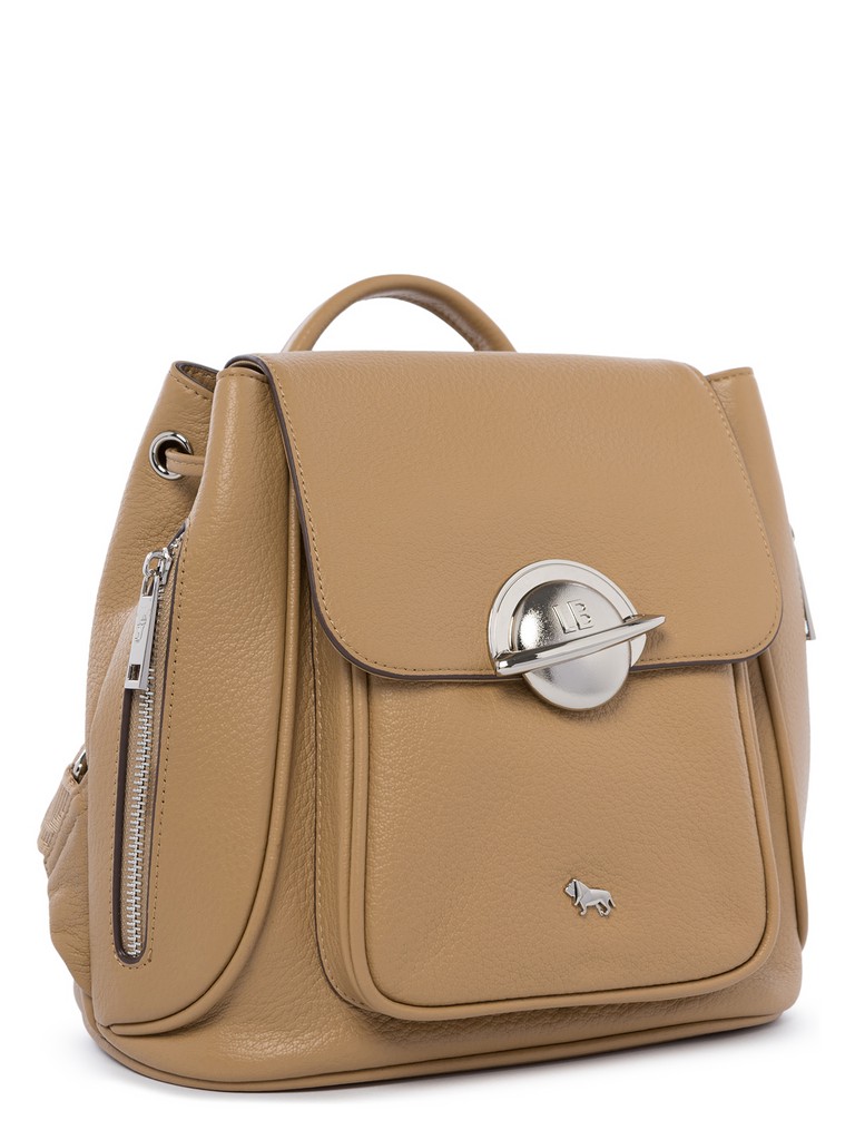 Женский рюкзак торговой марки Labbra из натуральной кожи. Модель затягивается шнуром и закрывается клапаном на магнитную кнопку. Содержит внутри один отдел, в котором имеются два открытых кармана и карман на молнии. На передней стенке под клапаном есть открытый карман, по бокам – два кармана на молниях. Высота ручки - 7 см. Максимальная длина регулируемых лямок из текстиля – 90 см, ширина – 4 см. Модель имеет ножки на дне. Не вмещает формат А4.