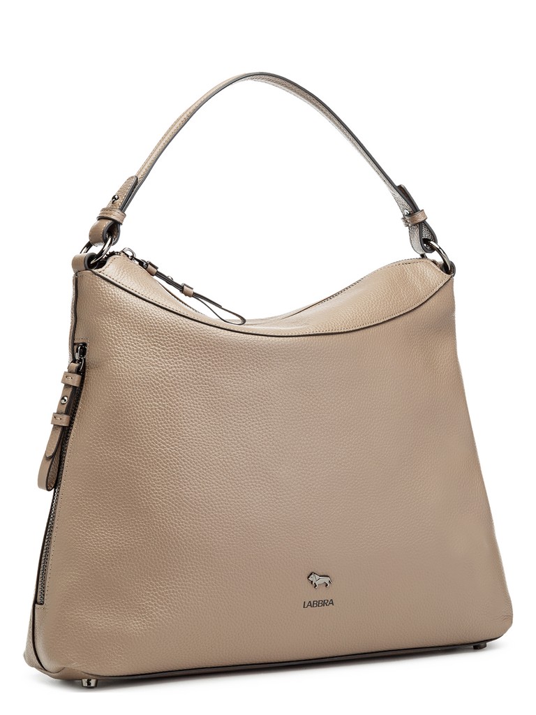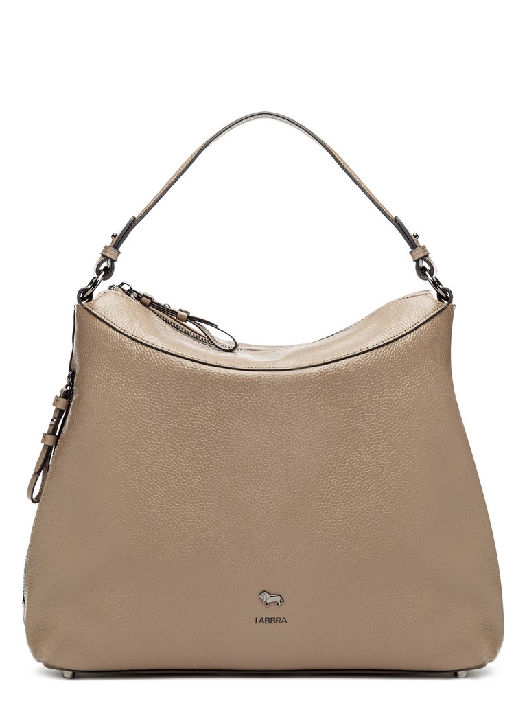 Женская сумка торговой марки Labbra из натуральной кожи. Модель закрывается на металлическую молнию и содержит внутри одно отделение с двумя карманами на молнии и тремя открытыми карманами. Модель имеет боковой карман на молнии. Высота ручки - 22 см. Длина наплечного ремня из натуральной кожи -  105 см., ширина - 2,5 см. Модель имеет ножки на дне. Вмещает формат А4.