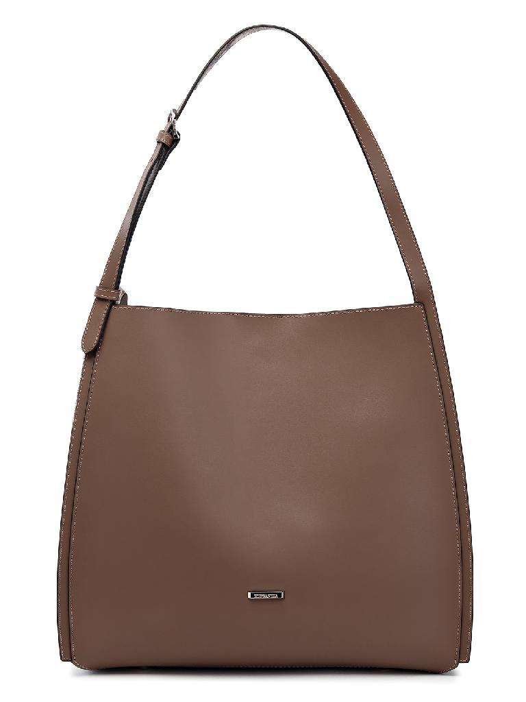 Женская сумка торговой марки Eleganzza из натуральной кожи. Модель закрывается на магнитную кнопку. Содержит внутри три отделения. Центральное отделение закрывается на металлическую молнию и имеет карман на молнии, два открытых кармана и держатель для ручки. Высота ручек - 26 см. Модель имеет ножки на дне. Вмещает формат А4.