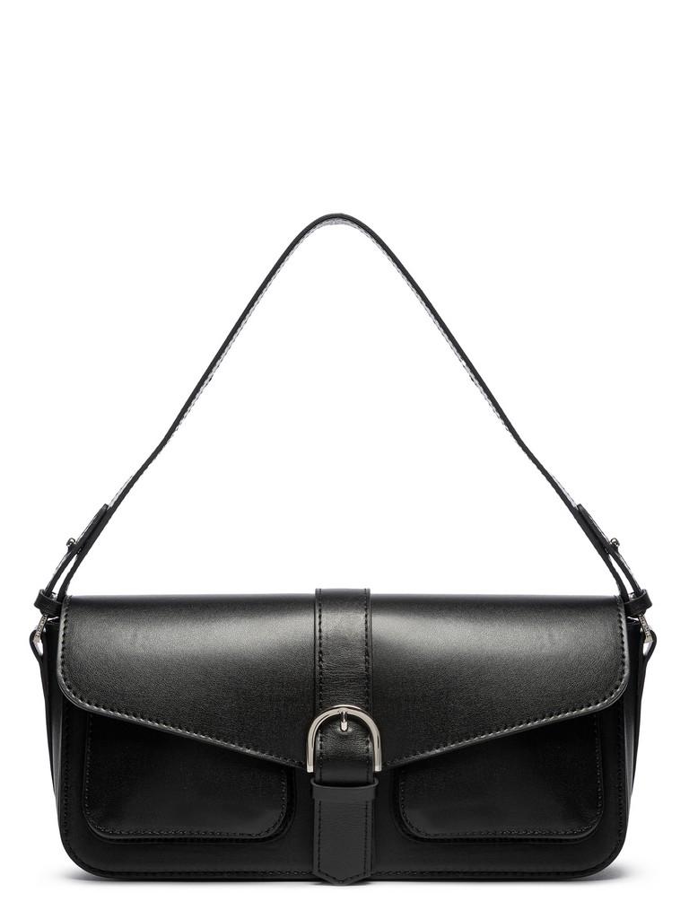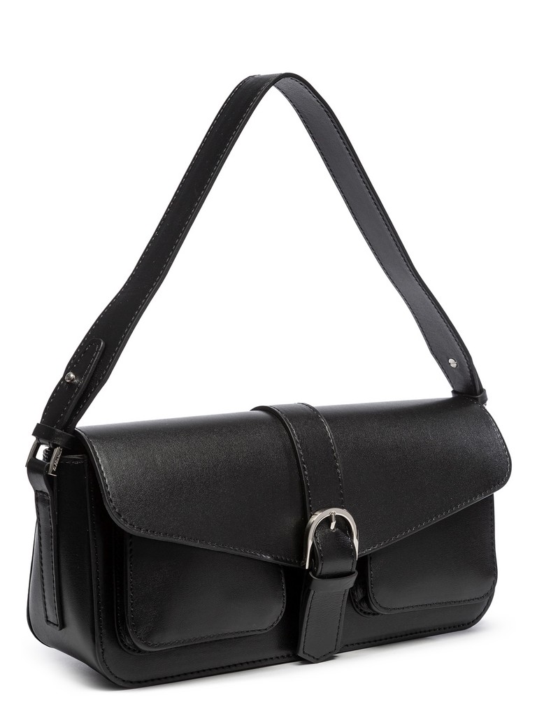 Женская сумка торговой марки Eleganzza из натуральной кожи. Модель закрывается клапаном на магнитную кнопку, под клапаном есть два открытых кармана. Содержит внутри один отдел, в котором имеется карман на молнии. Высота ручки - 19 см. Максимальная длина съемного плечевого ремня из натуральной кожи - 125 см, ширина - 2 см. Модель не имеет ножки на дне. Не вмещает формат А4.