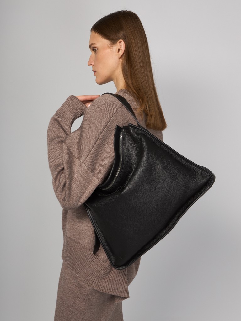 Женская сумка торговой марки Eleganzza из натуральной кожи. Модель застегивается на молнию. Содержит внутри один отдел, в котором имеются карман на молнии и открытый карман. Высота ручки - 14 см. Модель не имеет ножки на дне. Вмещает формат А4.