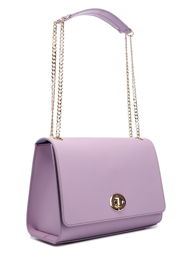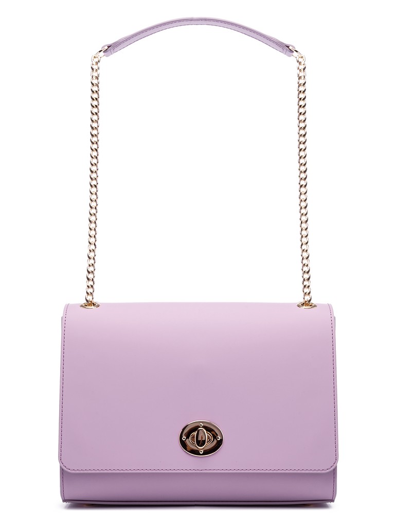 Женская сумка торговой марки Eleganzza из натуральной кожи. Модель закрывается клапаном на замок. Содержит внутри один отдел, в котором имеются карман на молнии и два открытых кармана. На задней стенке есть открытый карман. Высота ручки из металлической цепочки со вставкой из кожи - 60 см. Ручка трансформируется из одной в две. Высота двух ручек - 30 см. Модель имеет ножки на дне. Не вмещает формат А4.