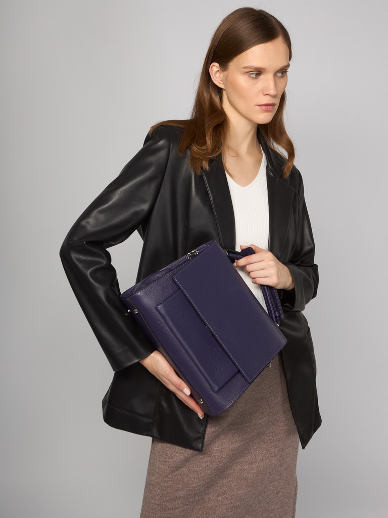 Женская сумка торговой марки Eleganzza из натуральной кожи. Модель закрывается клапаном на замок, под клапаном есть открытый карман. Содержит внутри два отдела. В одном отделе имеется карман на молнии, в другом - открытый карман. На задней стенке есть открытый карман. Высота ручки - 4 см. Длина съемного плечевого ремня из натуральной кожи - 79 см, ширина - 2,5 см. Модель имеет ножки на дне. Не вмещает формат А4.