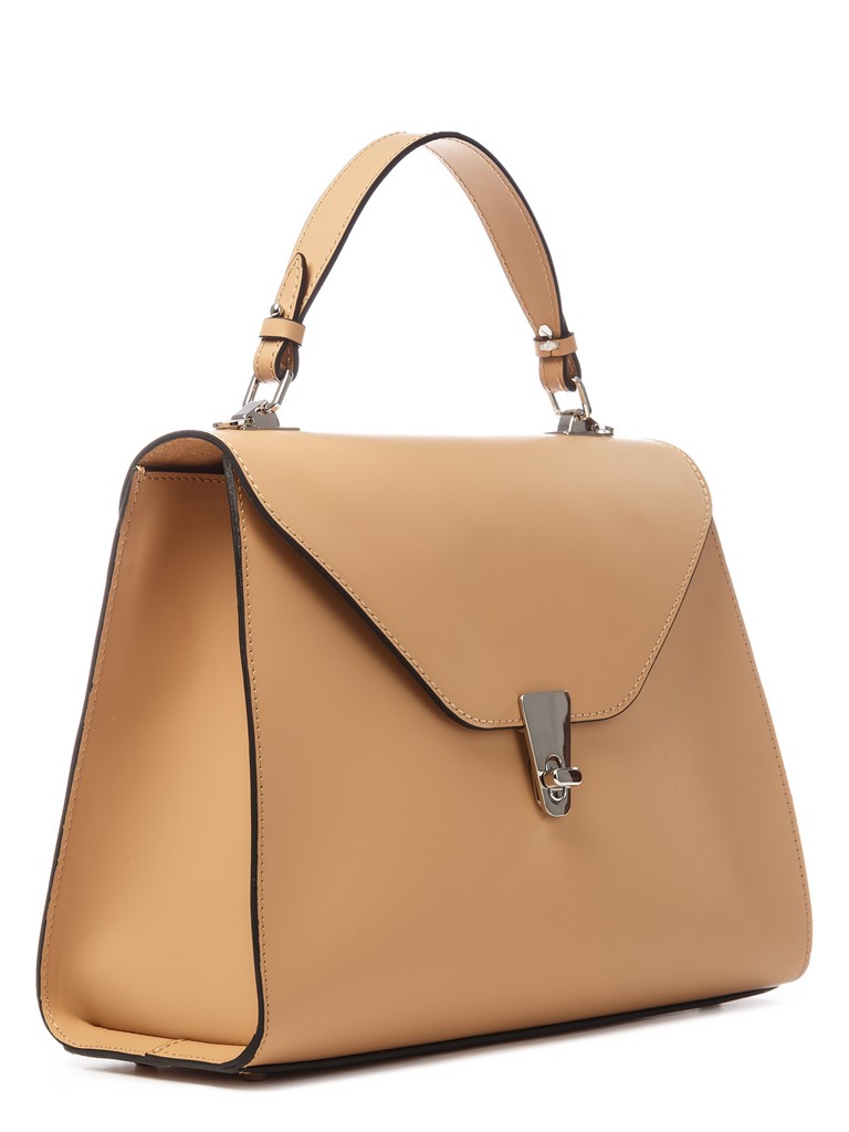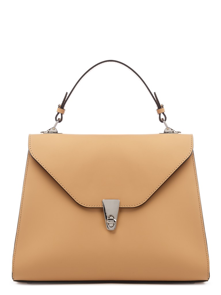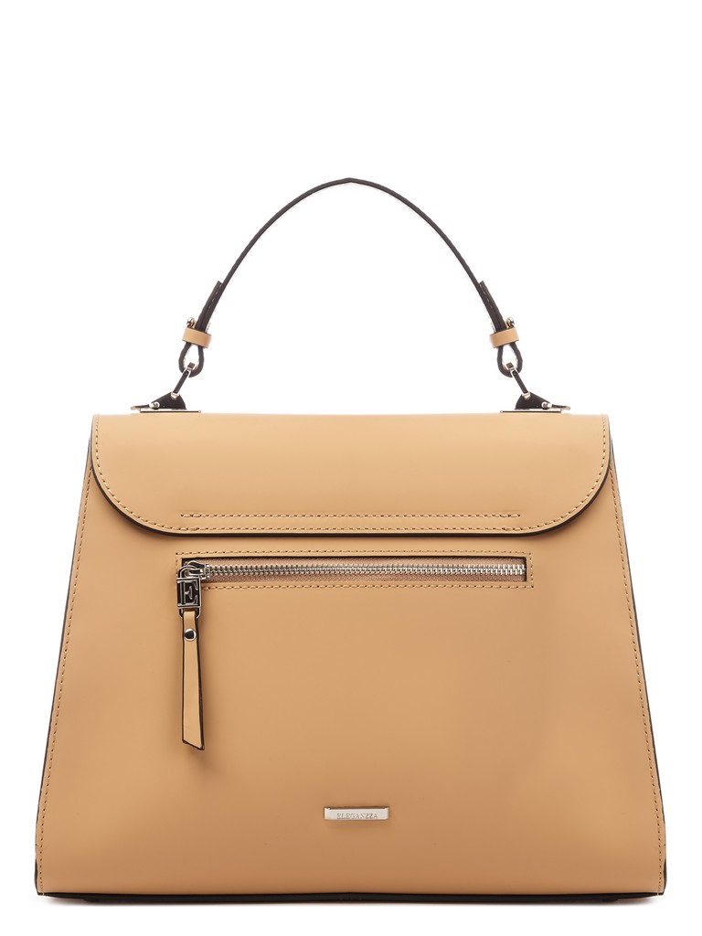 Женская сумка торговой марки Eleganzza из натуральной кожи. Модель закрывается на клапан с поворотным замком. Внутри одно отделение с карманом на молнии и двумя открытыми карманами. На задней стенке - карман на молнии. Высота ручки - 12 см.  Длина наплечного нерегулируемого ремня из натуральной кожи - 73 см., ширина - 4 см. Модель имеет ножки на дне. Не вмещает формат А4.