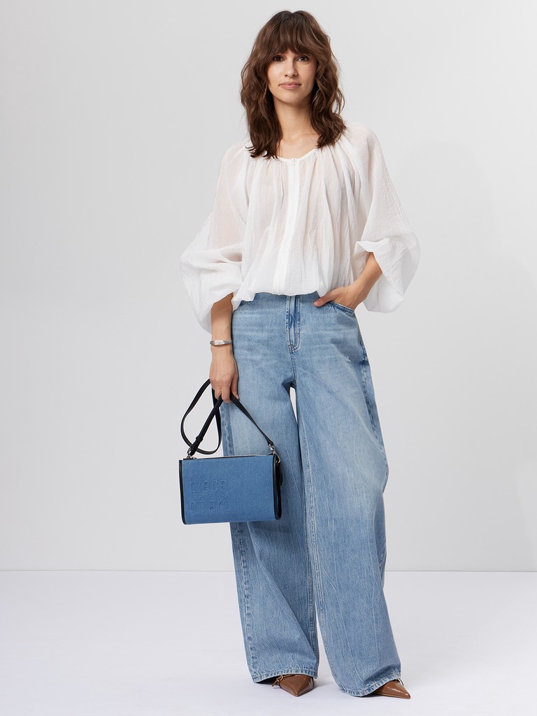 Женская сумка торговой марки Eleganzza из хлопка. На передней части изделия выполнено эмбоссирование — выпуклое тиснение, которое добавляет текстуру и подчеркивает уникальность. Внутри одно отделение с карманом на молнии и открытым карманом. Максимальная длина регулируемого съемного плечевого ремня из натуральной кожи - 120 см, ширина - 1,5 см. Модель не имеет ножки на дне. Не вмещает формат А4.