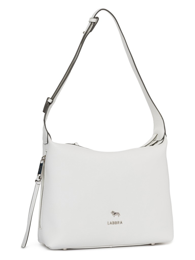 Женская сумка торговой марки Labbra из натуральной кожи. Модель застегивается на молнию. Содержит внутри один отдел, в котором имеются три кармана (один из них на молнии). Сбоку есть карман на молнии. Высота ручки - 24 см, максимальная высота ручки - 32 см. Модель имеет ножки на дне. Не вмещает формат А4.