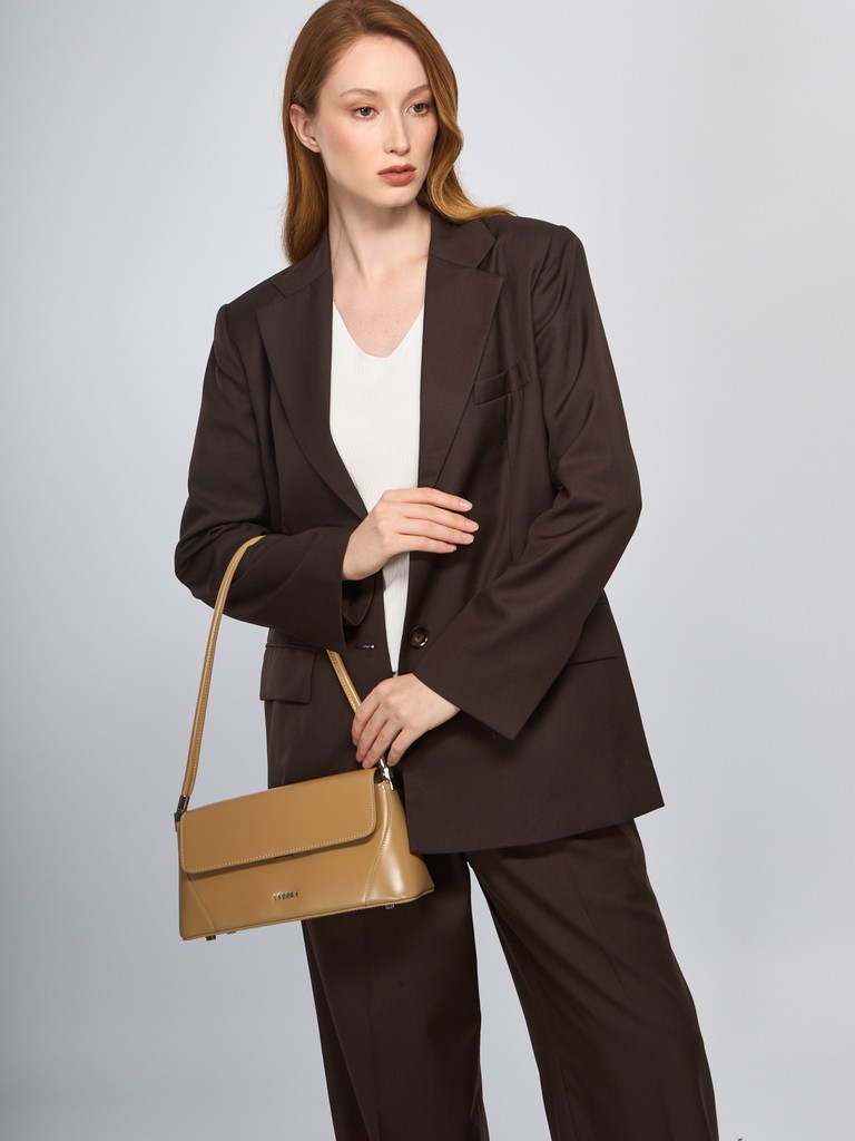 Женская сумка торговой марки Labbra из натуральной кожи. Модель закрывается на клапан с замком и металлическую молнию. Внутри одно отделение с карманом на молнии и двумя открытыми карманами. На задней стенке - карман на молнии. Высота ручки - 27 см. Модель имеет ножки на дне.