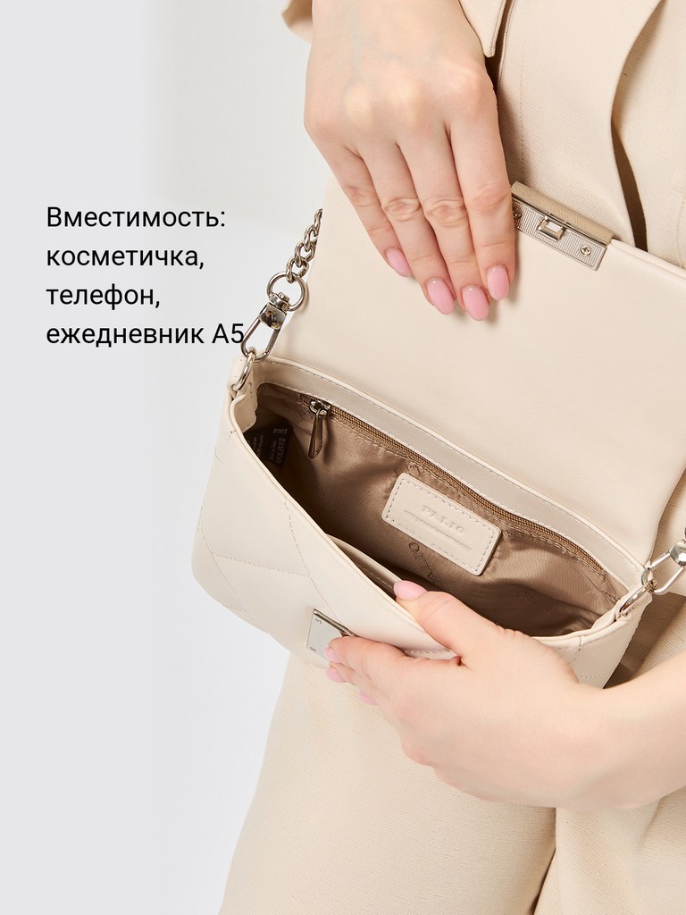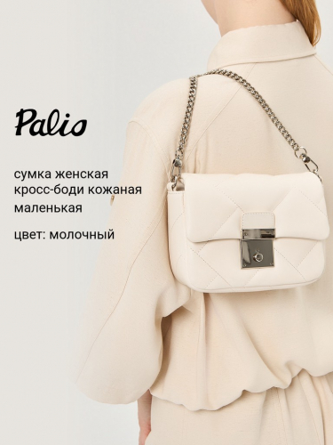 Женская сумка торговой марки Palio из натуральной кожи. Модель закрывается на клапан с замком и имеет одно отделение с карманом на молнии и открытым карманом. Длина регулируемого несъёмного наплечного ремня из натуральной кожи со вставками из металлической цепочки - 120 см. Модель не имеет ножки на дне.