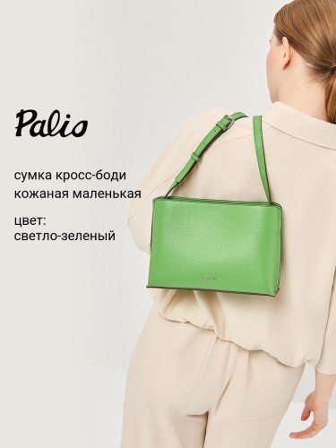 Женская сумка торговой марки Palio из натуральной кожи. Модель имеет три отделения. Центральное закрывается на металлическую молнию и не содержит карманов. Дополнительные отделения закрываются на магнитные кнопки. Заднее отделение содержит карман на молнии, переднее отделение - открытый карман. Длина наплечного ремня из натуральной кожи - 118 см., ширина - 1,5 см. Модель не имеет ножки на дне.