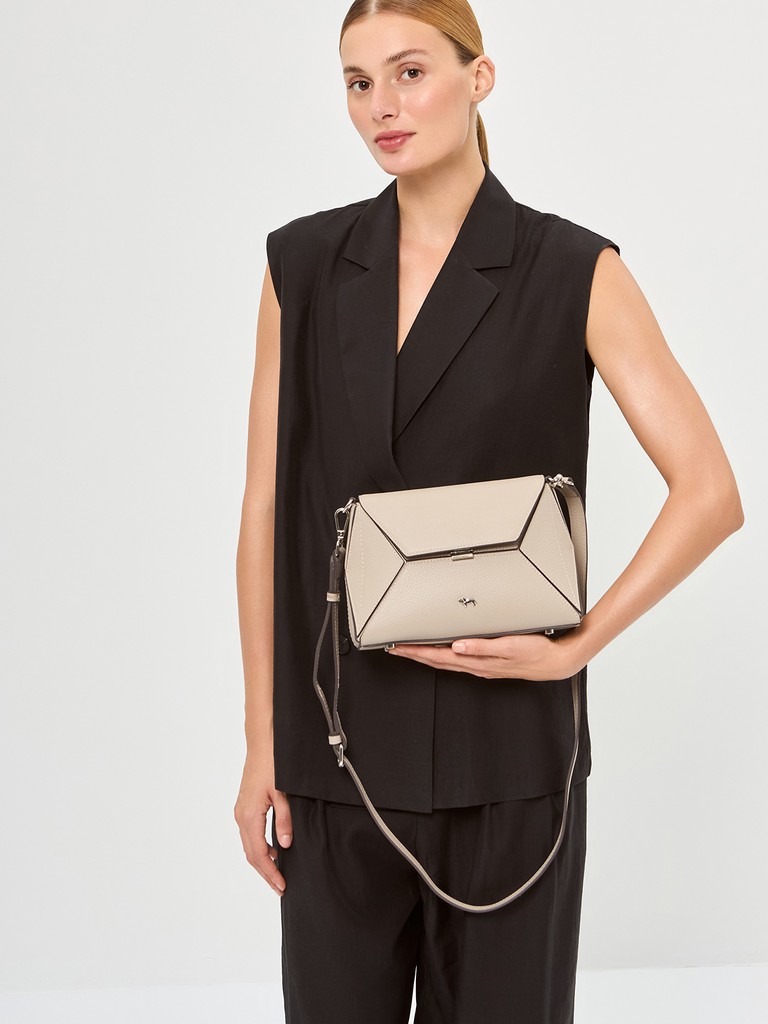 Женская сумка торговой марки Labbra из натуральной кожи. Модель закрывается клапаном на замок. Содержит внутри два отдела, между которыми имеется отделение на молнии. В одном отделе есть два открытых кармана, в другом - карман на молнии. На передней стенке есть карман на молнии. Максимальная длина съемного регулируемого плечевого ремня из текстиля – 115 см, ширина – 1,5 см. Модель имеет ножки на дне. Не вмещает формат А4.