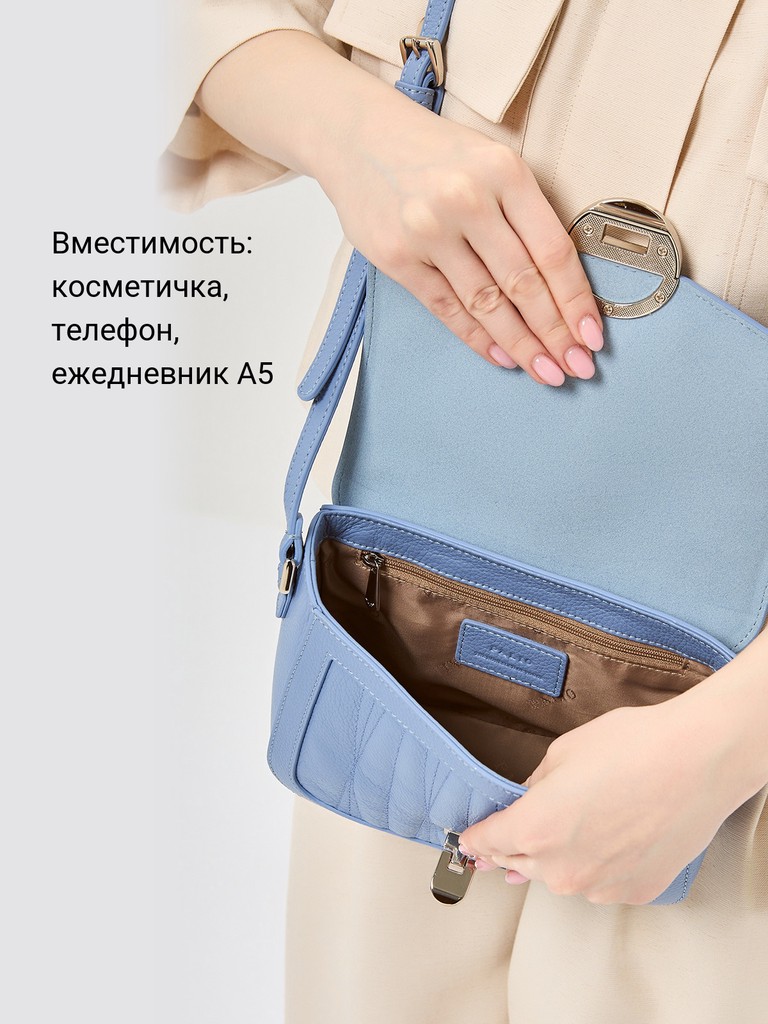 Женская сумка торговой марки Palio из натуральной кожи. Модель закрывается клапаном с замком, имеет одно отделение с карманом на молнии и открытым карманом. Длина наплечного ремня из натуральной кожи - 118 см., ширина - 1,2 см. Модель не имеет ножки на дне.
