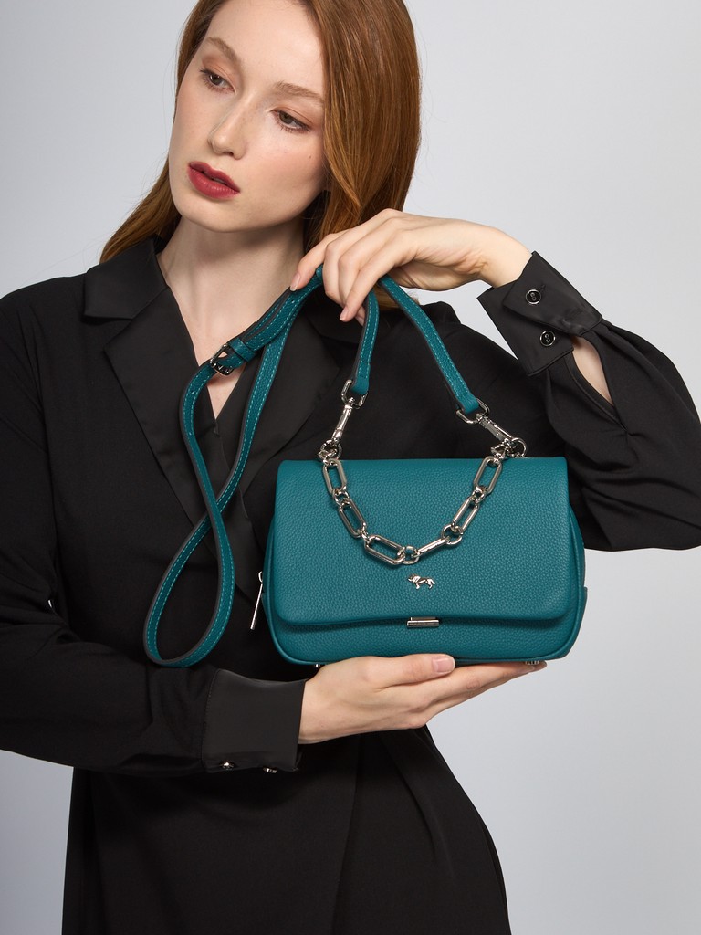 Женская сумка торговой марки Labbra из натуральной кожи. Модель закрывается на клапан с замком и металлическую молнию. Внутри одно отделение с карманом на молнии и открытым карманом. На задней стенке - карман на молнии. Высота ручки - цепочки - 13 см. Длина наплечного ремня из натуральной кожи - 110 см., ширина – 1,5 см. Модель имеет ножки на дне.