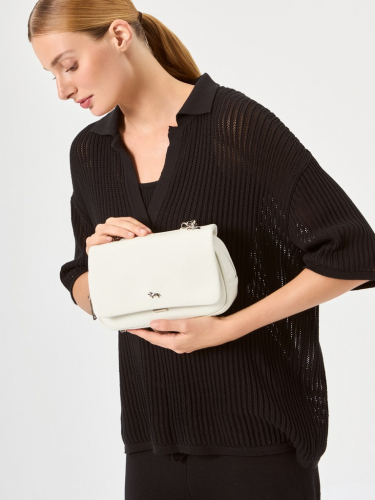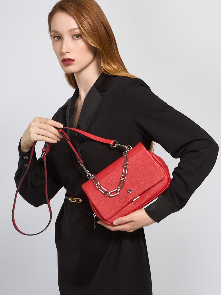 Женская сумка торговой марки Labbra из натуральной кожи. Модель закрывается на клапан с замком и металлическую молнию. Внутри одно отделение с карманом на молнии и открытым карманом. На задней стенке - карман на молнии. Высота ручки - цепочки - 13 см. Длина наплечного ремня из натуральной кожи - 110 см., ширина – 1,5 см. Модель имеет ножки на дне.