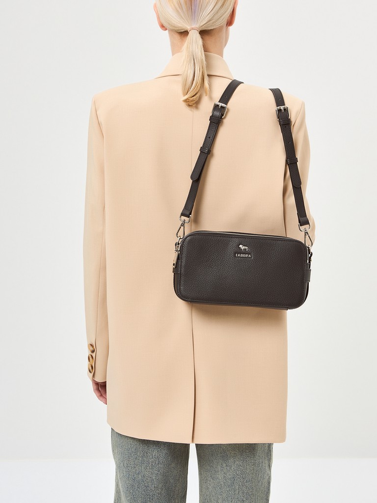 Женская сумка торговой марки Labbra из натуральной кожи. Модель застегивается на молнии. Содержит внутри два отдела. В одном отделе имеются два кармана, в другом – карман на молнии, открытый карман и три кармашка для пластиковых карт. На задней стенке есть карман на магнитной кнопке. Максимальная длина съемного регулируемого плечевого ремня из натуральной кожи – 112 см, ширина – 1,5 см. Максимальная длина съемного регулируемого плечевого ремня из текстиля – 134 см, ширина – 4 см. Модель не имеет ножки на дне. Не вмещает формат А4.