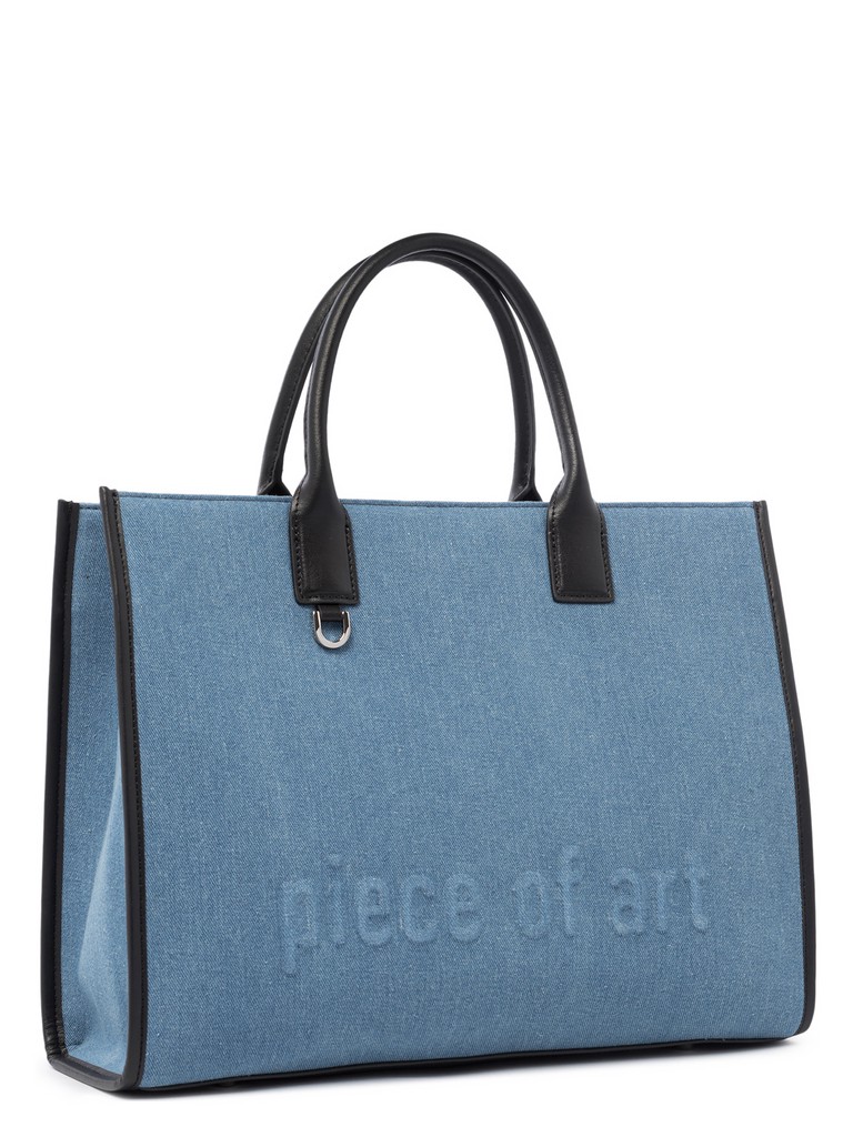 Женская сумка торговой марки Eleganzza из хлопка. На передней части изделия выполнено эмбоссирование — выпуклое тиснение, которое добавляет текстуру и подчеркивает уникальность. Внутри одно отделение с двумя карманами на молнии, открытым карманом и вкладной косметичкой. Косметичка застегивается на молнию. Высота ручек - 13 см. Длина регулируемого съемного плечевого ремня из текстиля - 112 см, ширина - 4 см. Модель имеет ножки на дне. Вмещает формат А4.