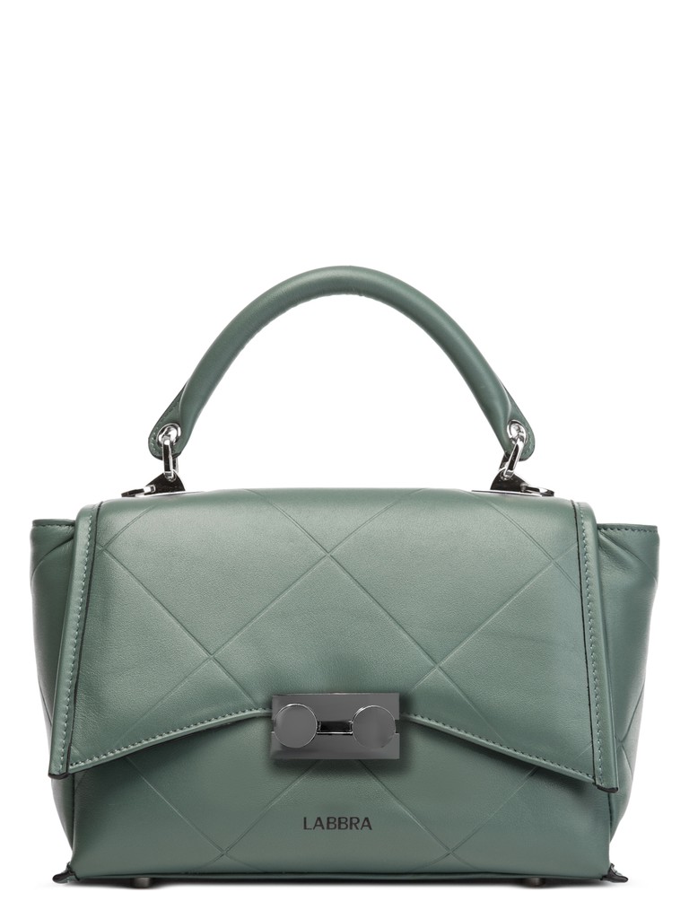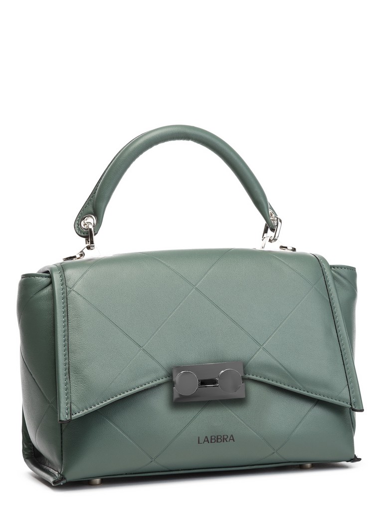 Женская сумка торговой марки Labbra из натуральной кожи. Модель закрывается на клапан с замком и имеет два отделения, разделенные карманом-перегородкой на молнии и дополнительный карман на молнии. На задней стенке - карман на молнии. Высота ручки - 9 см. Длина наплечного ремня из натуральной кожи - 100 см., ширина - 1,7 см. Модель имеет ножки на дне.